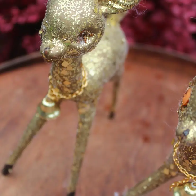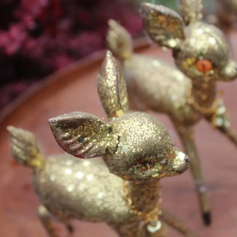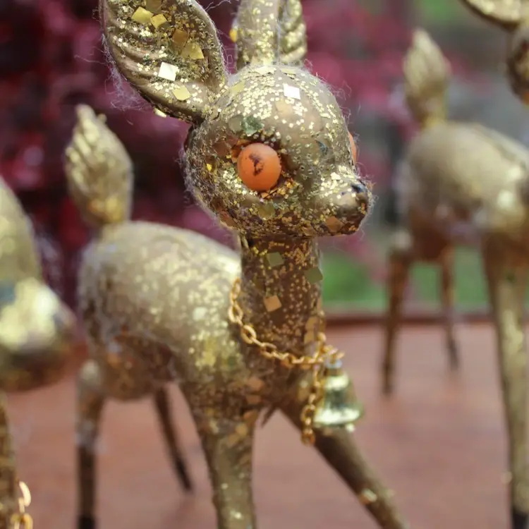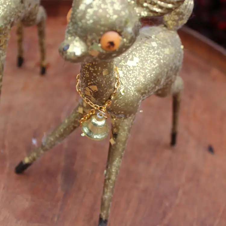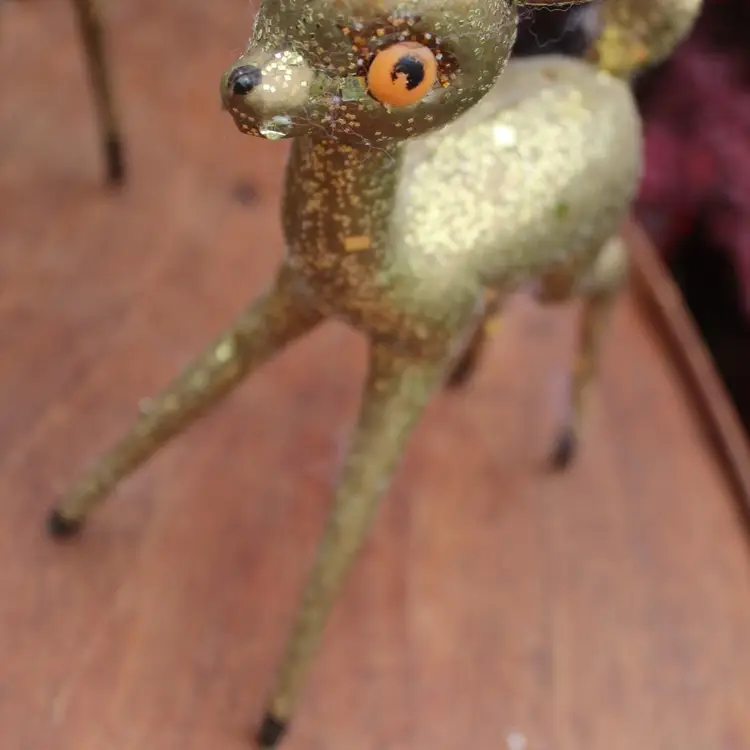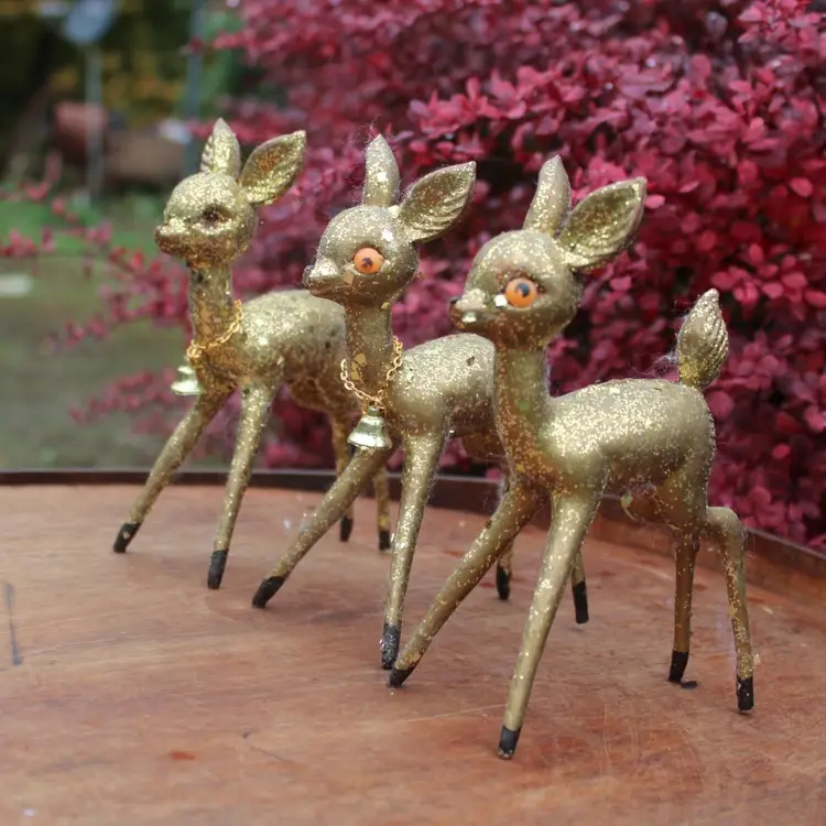 Vintage 50s Mid Century Modern Deer Statues Gold Plastic Christmas Holiday Anthropomorphic Statue A whimsical trio of deer statues in the most excellent vintage condition they are 70+ years old. These belonged to my grandmother Great to add to your or a loved ones MCM holiday collection. They have been used every christmas since 1952, so they do have vintage ware and flaws. They need some cleaning, love and repair. Please see photos.