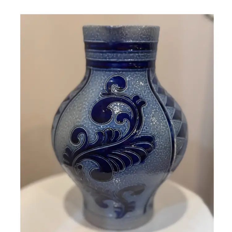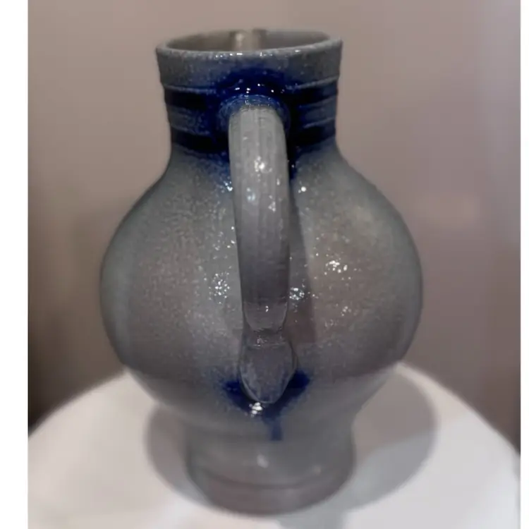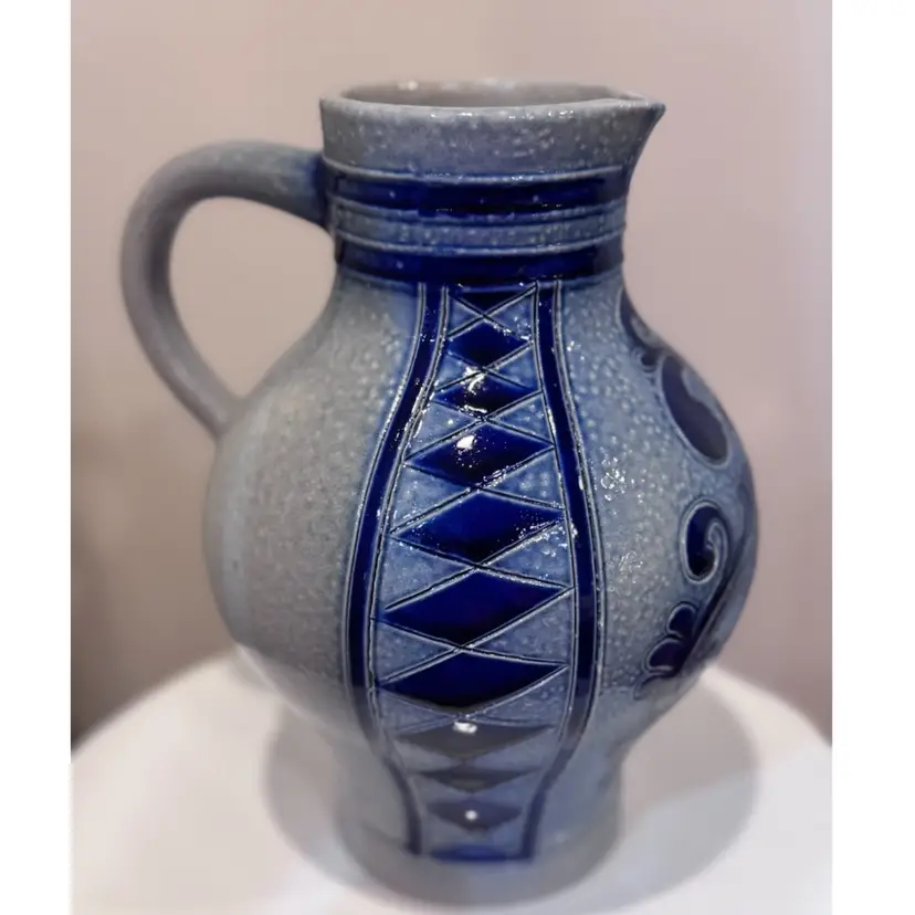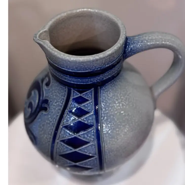Beautiful German salt glazed pitcher. No chips or cracks. Measures 9 inches tall.