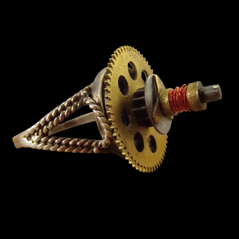 Reinvented Ring Nickname: "Neural Actuator" Size 11 Silver Band with Recycled Circuit Board, Gears, and Computer Parts Tested .800 Lower Grade Silver