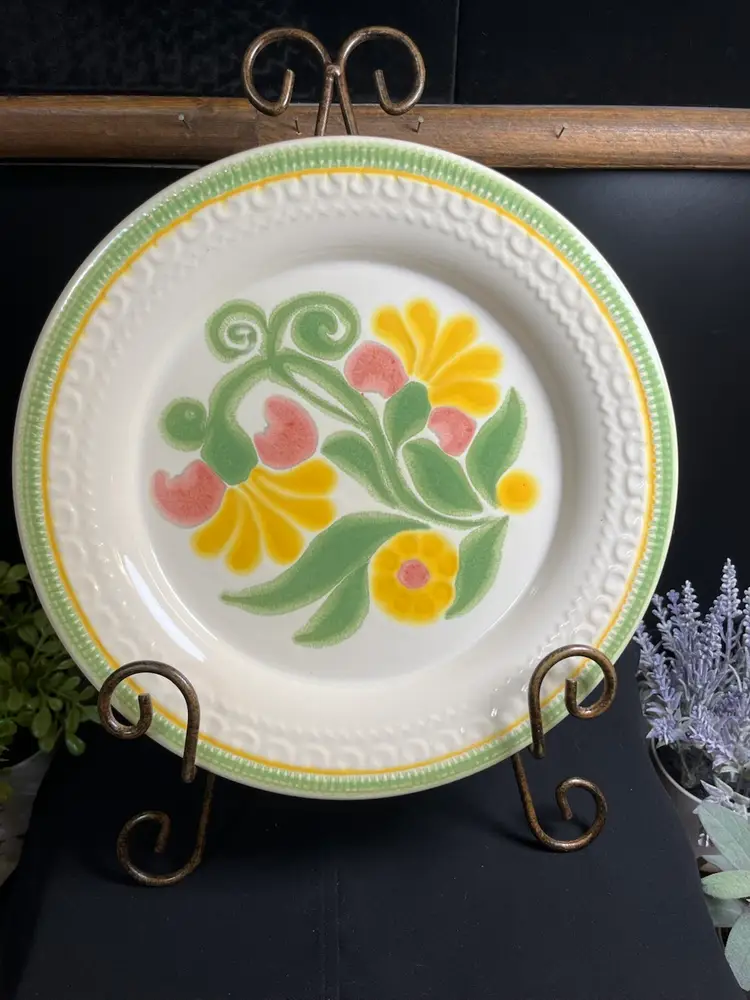 This is such a bright happy pattern. Could be used in a cute vignette. Or if you need a replacement dinnerware plate-here it is!! Is in excellent condition, with No chips, cracks or scratches. Measures approx 10.75" Diameter, 1 Lb 12 Oz.