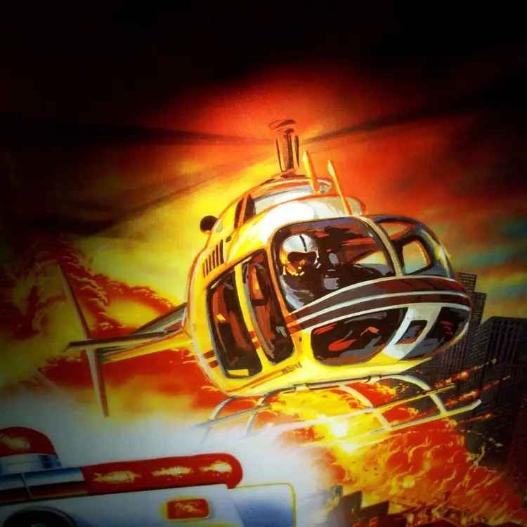 FYI: Translite artwork was intended to be used inside a pinball machine behind clear glass. The lights inside the pinball machine will illuminate the artwork. The item may also be hung on a wall either framed like an large art print of back lit with lighting if you build a special wall box with lights behind it. A few photos show how nice the item looks when backlit with LED lighting. Orders are shipped with care. Full color original pinball machine translite. A pinball translite is a flexible art sheet that is placed behind the clear glass on a pinball machine. The clear glass is NOT included this is just the translite. Measures 20" X 25". This item is quite scarce. Shipped rolled in heavy mailing tube. Unused old stock. Has mild imperfections due to age.