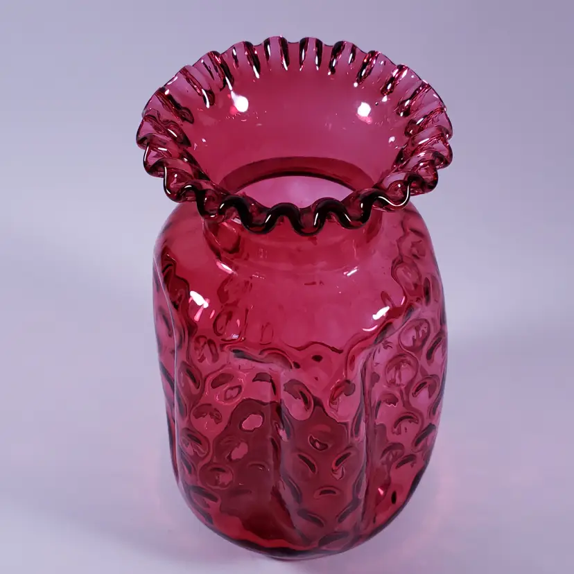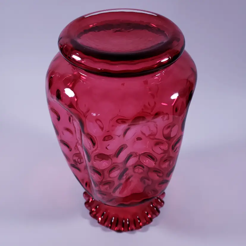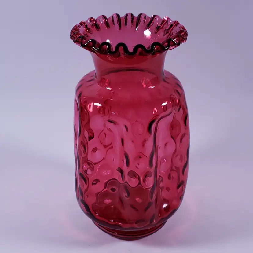 Vintage FENTON Cranberry Dot Optic Glass Vase