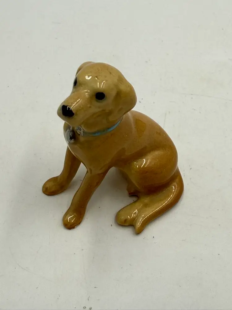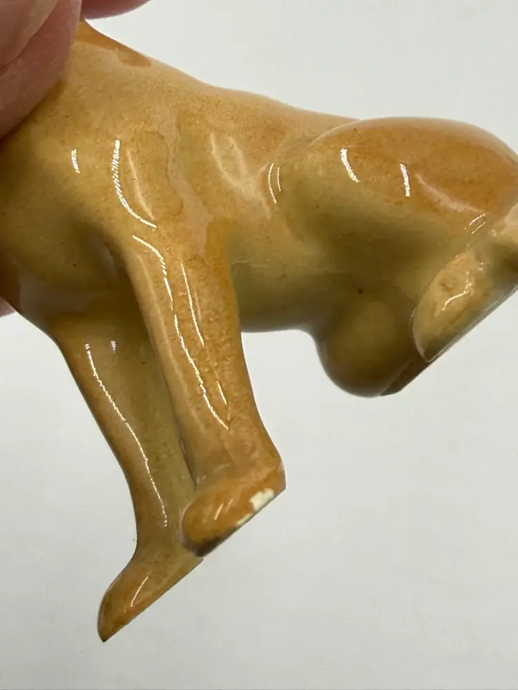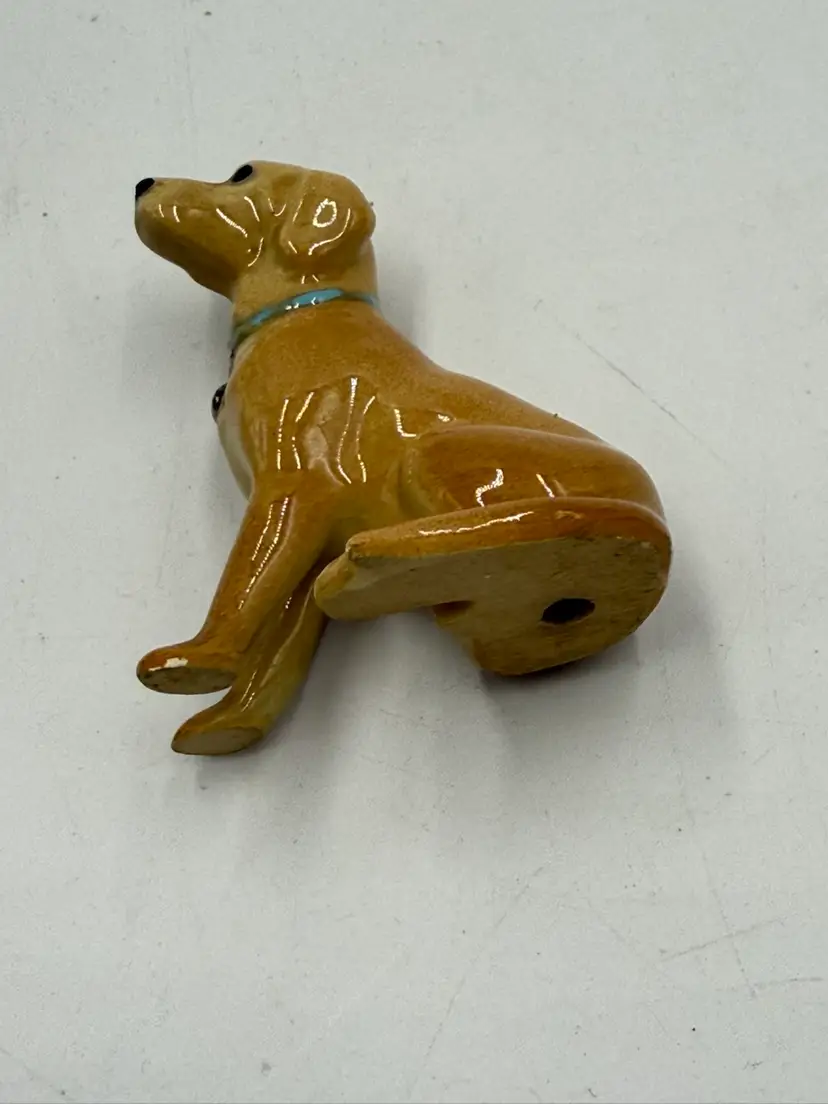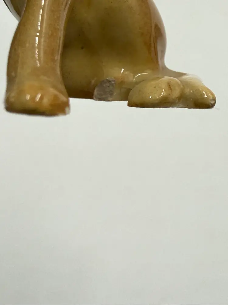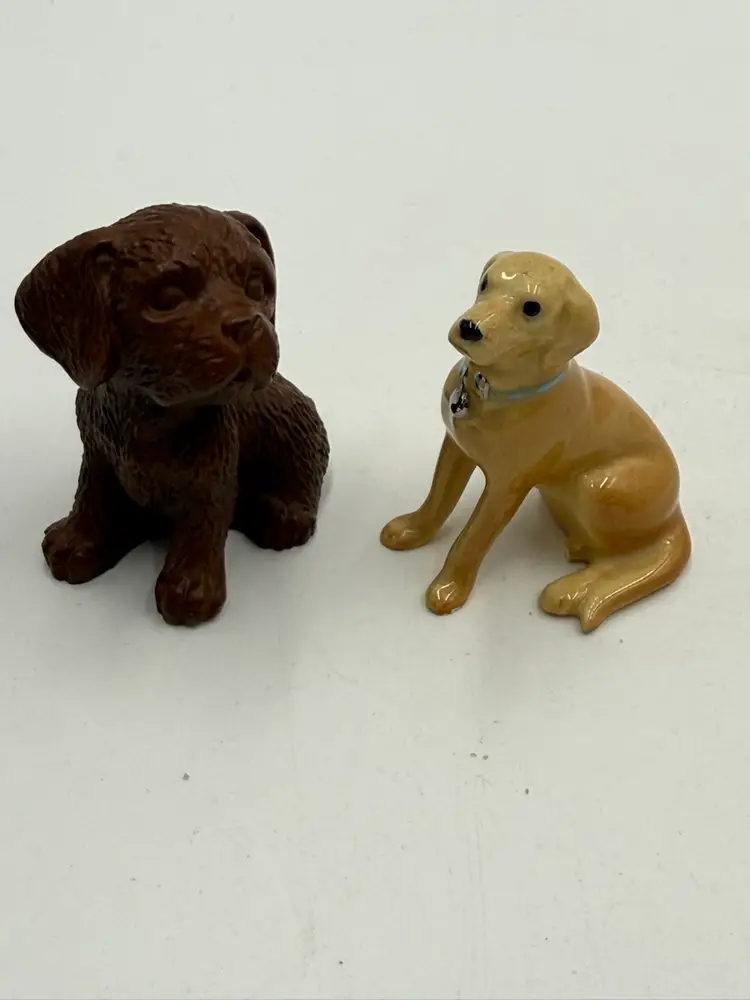 In AS IS condition due to the ceramic dog’s back leg has been broken off. The resin dog measures 2 1/4 inches tall and 2 inches wide. The ceramic dog measures 2 inches tall and 1 1/4 inches wide.