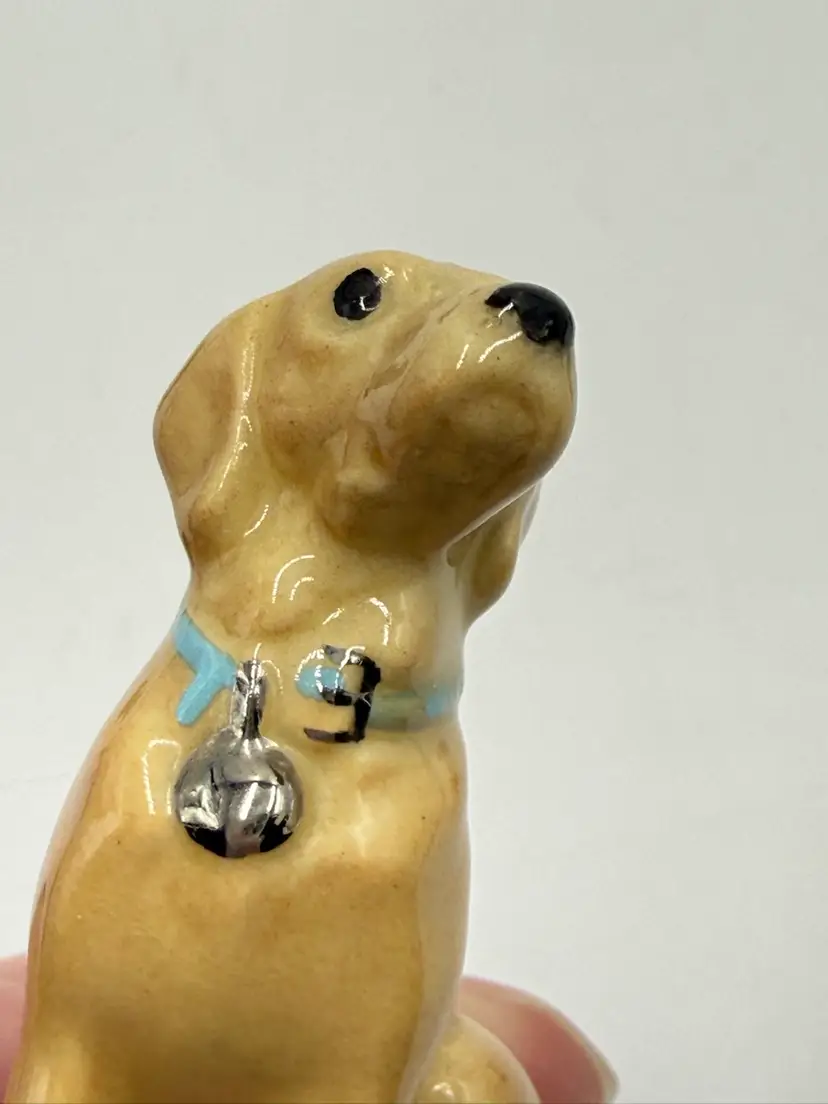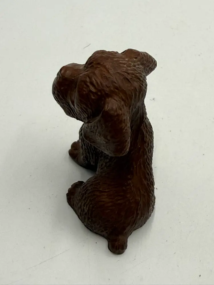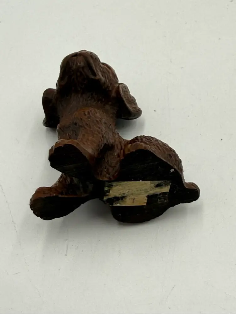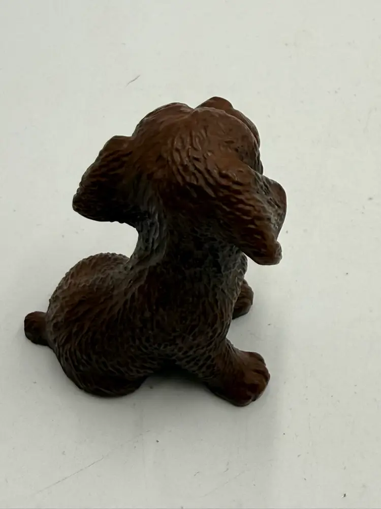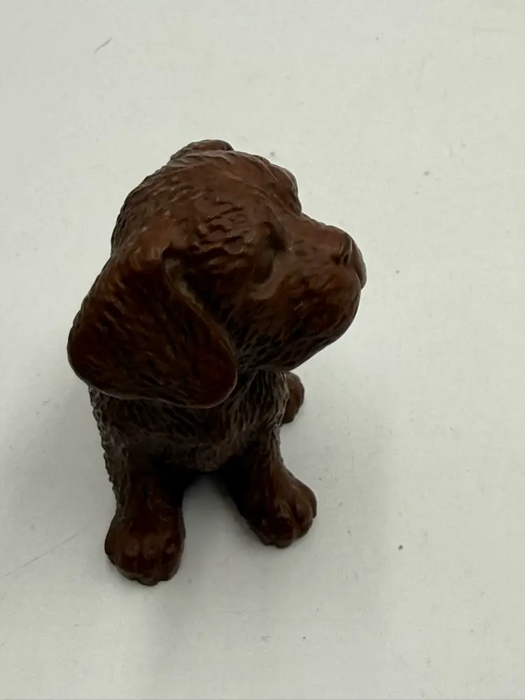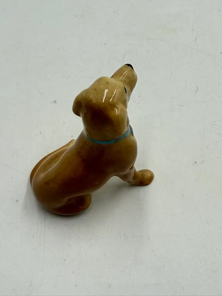 In AS IS condition due to the ceramic dog’s back leg has been broken off. The resin dog measures 2 1/4 inches tall and 2 inches wide. The ceramic dog measures 2 inches tall and 1 1/4 inches wide.