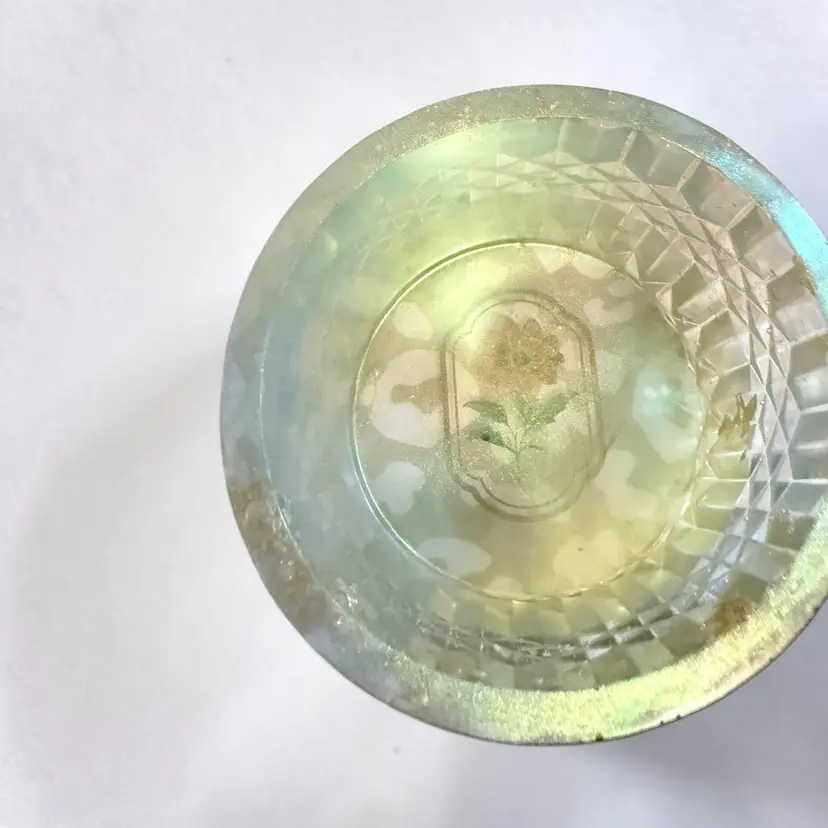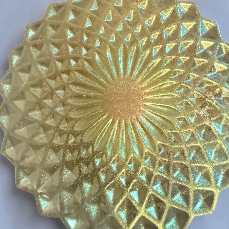 Resin shrink at jar iridescent yellow and green