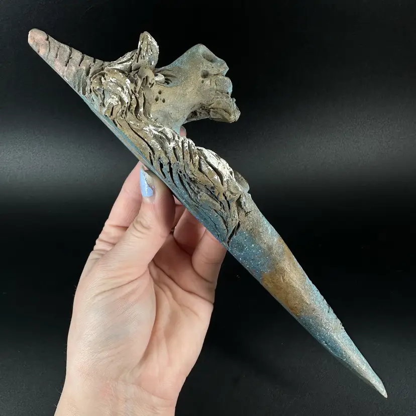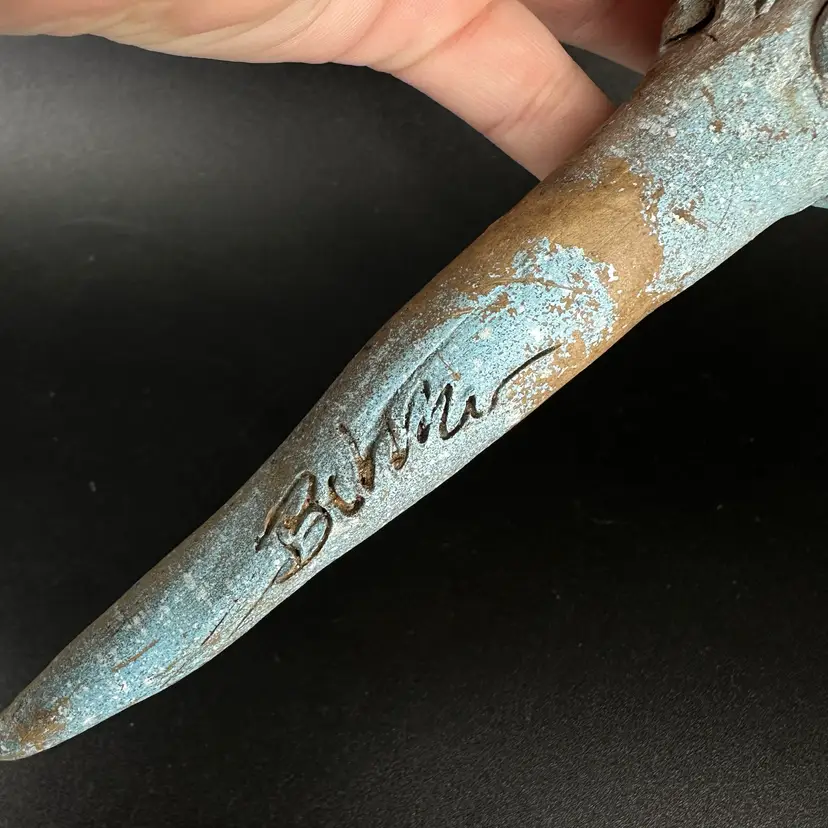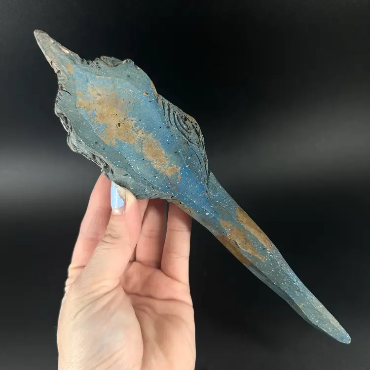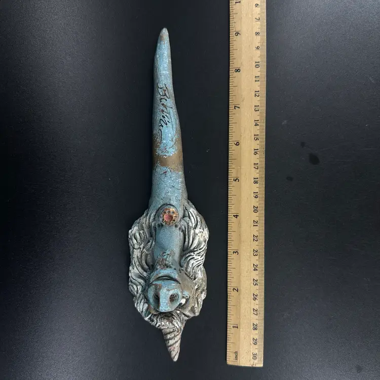 Resin blue unicorn plant/garden 9” stake. Signed on the post. See pictures. Measures approximately 9” long. No chips or cracks. Some wear in paint in some areas.