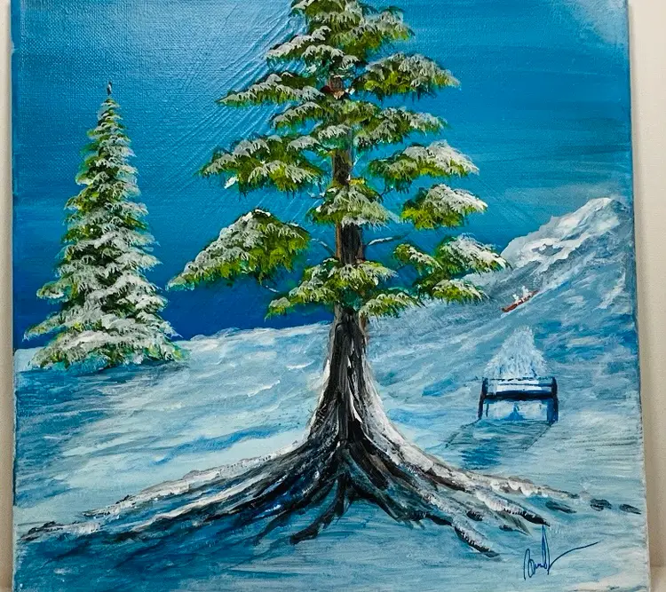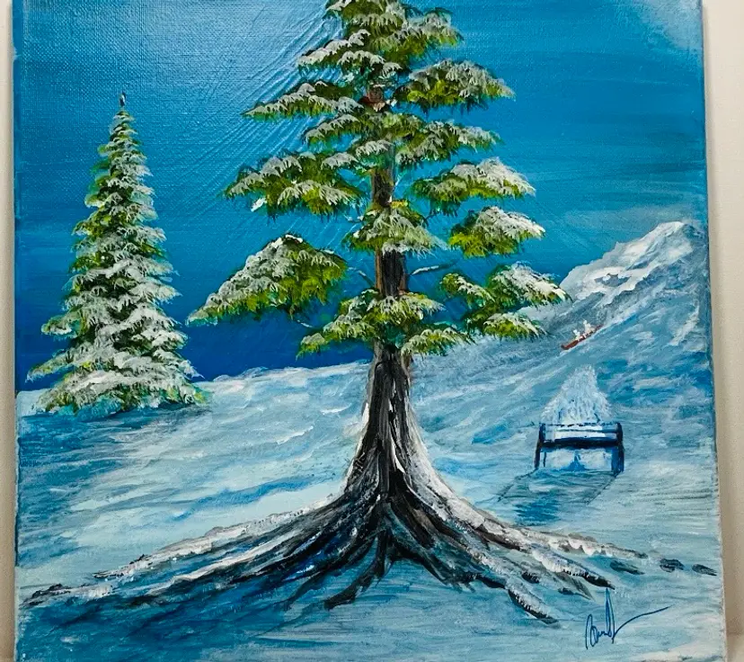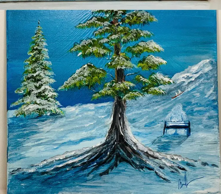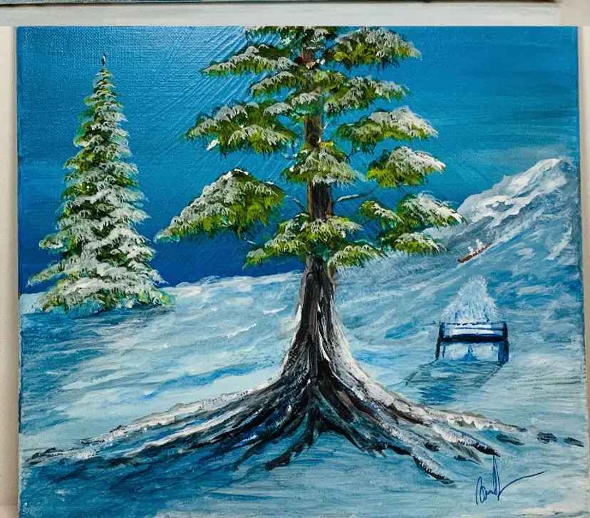 Original art signed by artist Bruce Anderson of @Vermont Paint and Photo Studio and YouTube channel. Mixed medium on canvas stretched canvas. Actual art piece is 12” by 12”