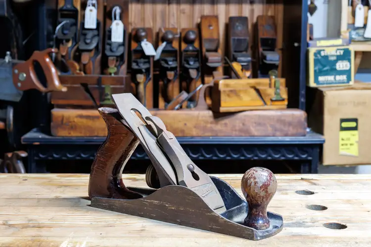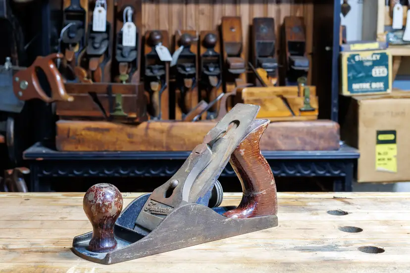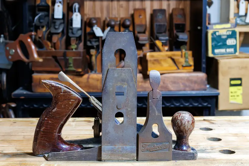 A restoration-grade "Trustworthy" No. 4 size smoothing plane. The handle has a repair. It is a solid user that will need restoration. Would also make a nice scrub plane conversion.