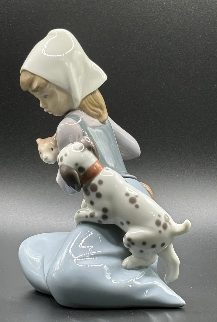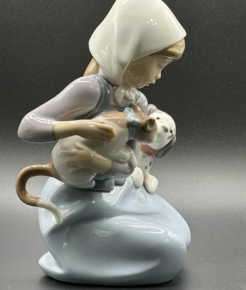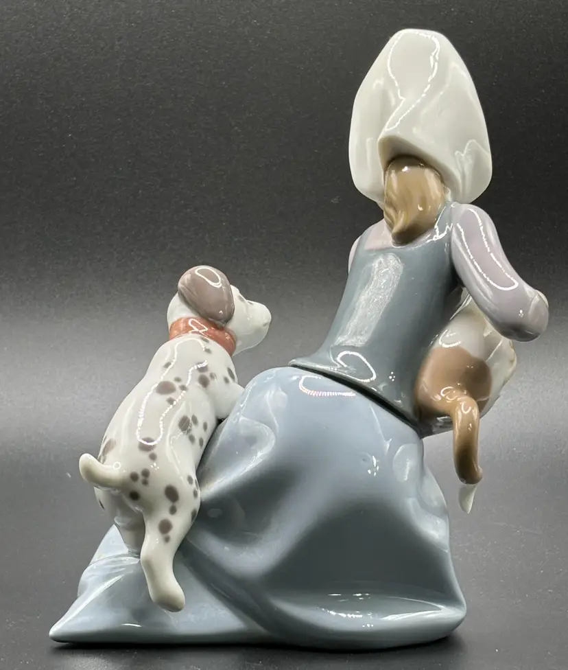 Great condition. The top tip of the finger of girl's right hand broke. No other chips or cracks. Please see all pictures.