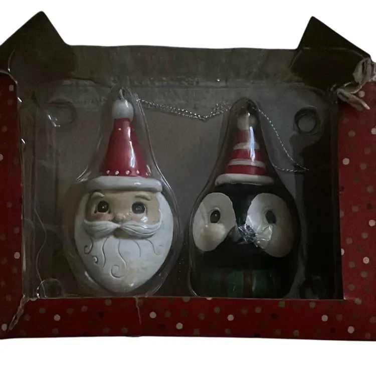 RETIRED Johanna Parker Holiday Ornament Set Penguin & Santa Box Damaged