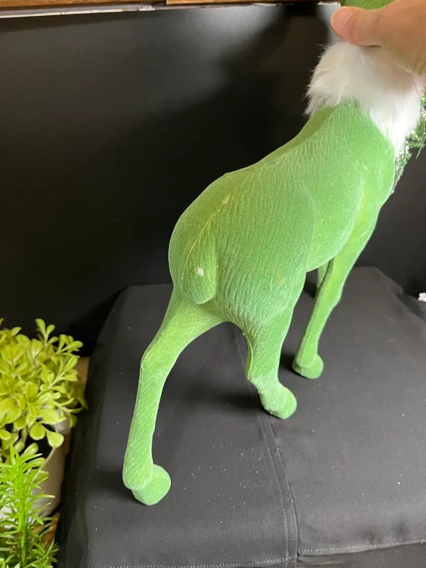 Oh....The vignettes you could create with this handsome fellow. Has 2 very small "rub areas" on the seam of his rump and on tail. He is in really good pre loved condition. It measures approx 16" H, 12" W, 2.75" Deep, 7 Oz