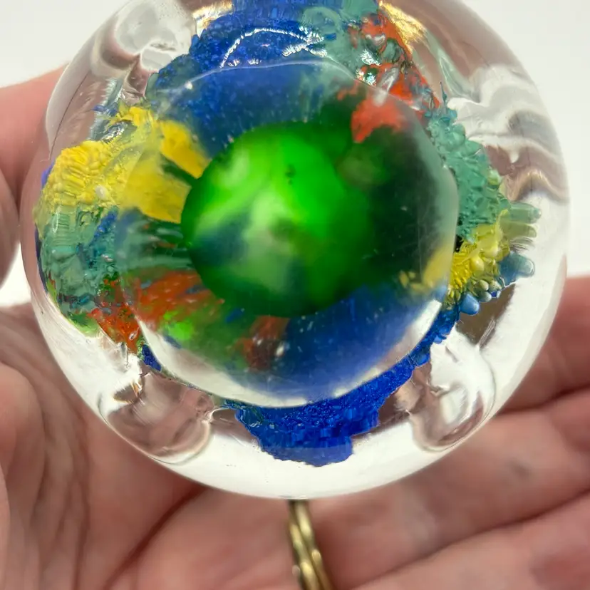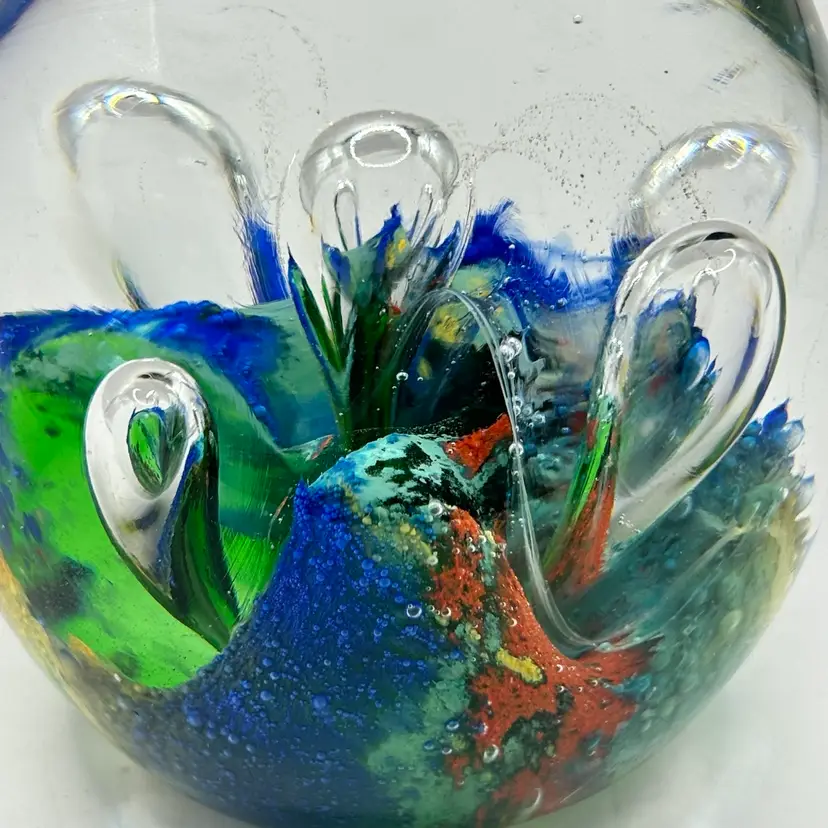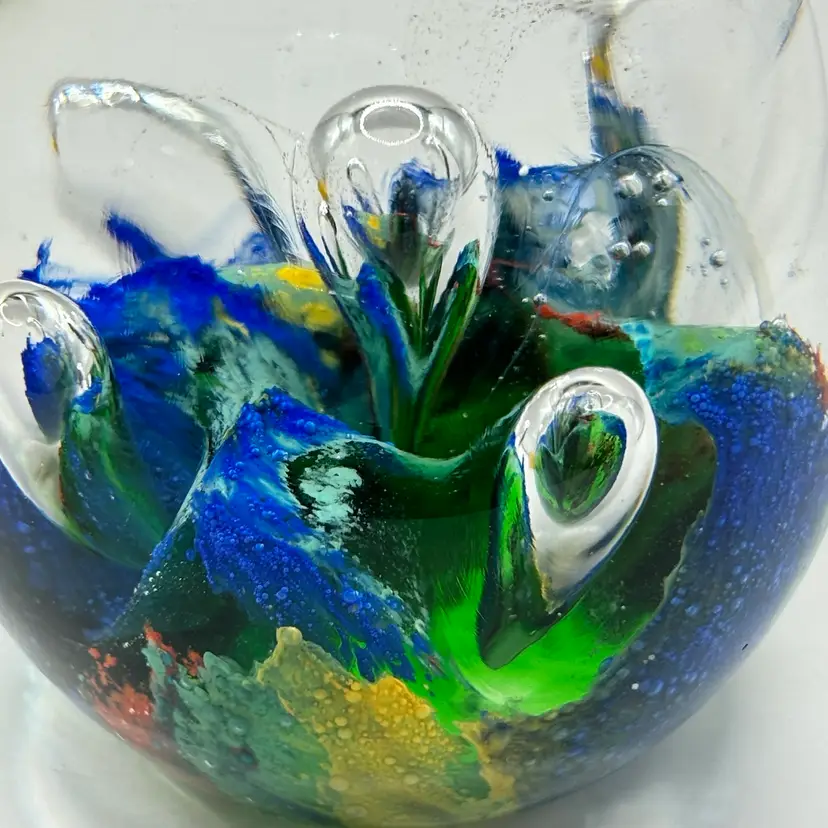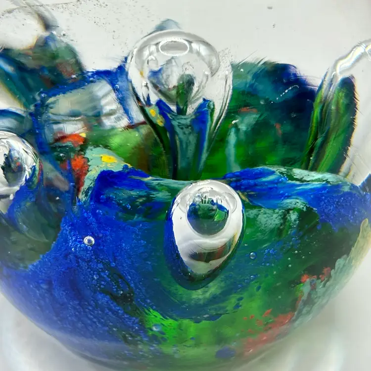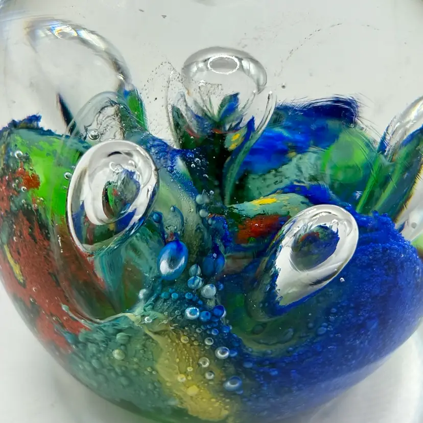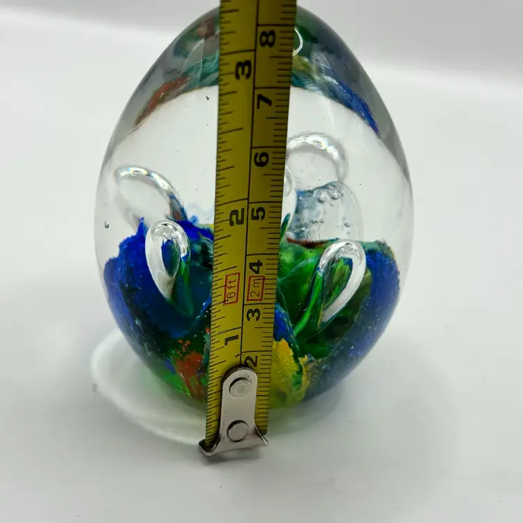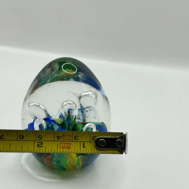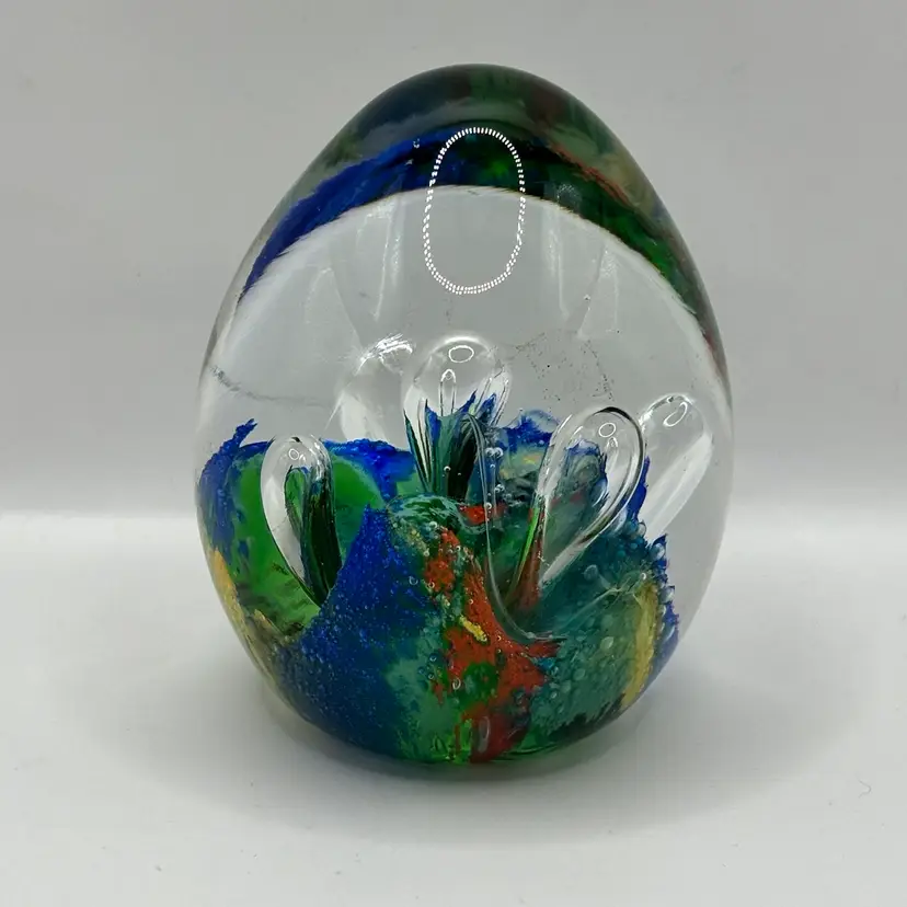 Retro Art Glass Paperweight Hand Blown Teardrop Bubbles Colorful Egg Shaped