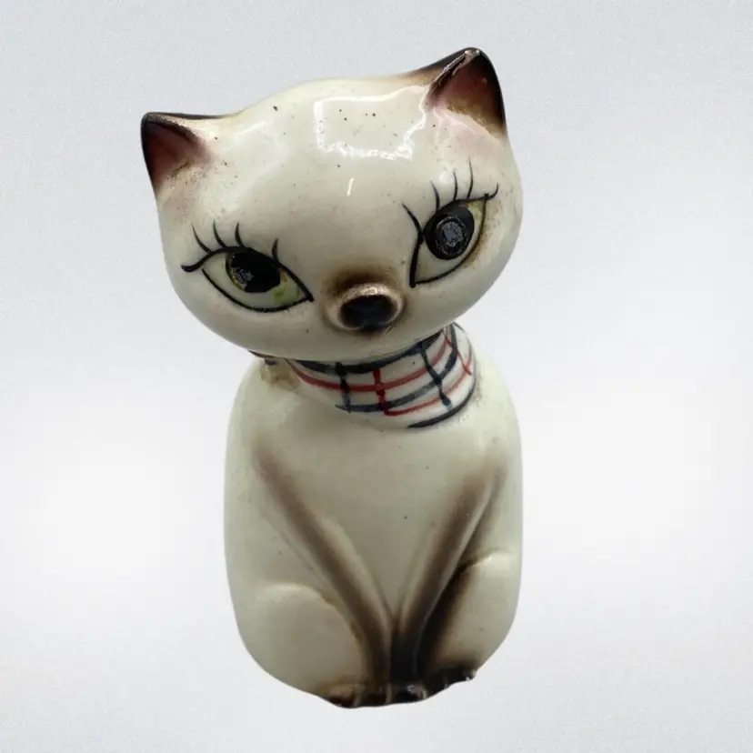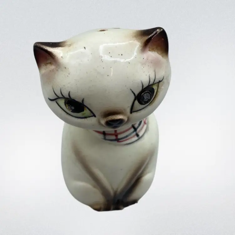 Retro Cat Kitten Shaker Pink Plaid Kitschy Vintage CottageCore Granny Sweet Squeaker Does Not Work