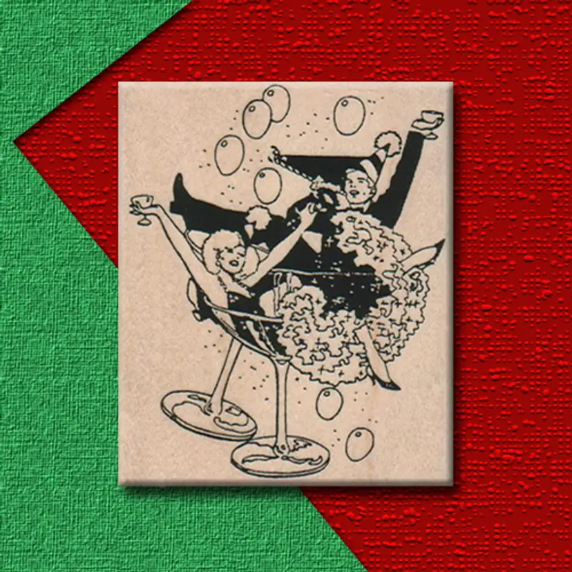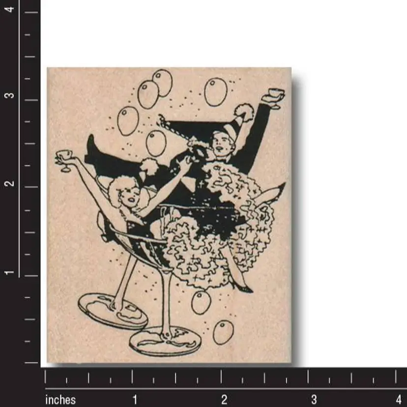 Retro Couple In Champagne Glass Rubber Stamp Size: 2-3/4 x 3-1/4 inches Wood mounted Red Rubber Brand new/unused • Great for scrapbooking, card making, journaling, crafts, collage, tags and mixed media projects. • First purchase on District? Use this code for $5 off a $10 min purchase. ALOHAG34