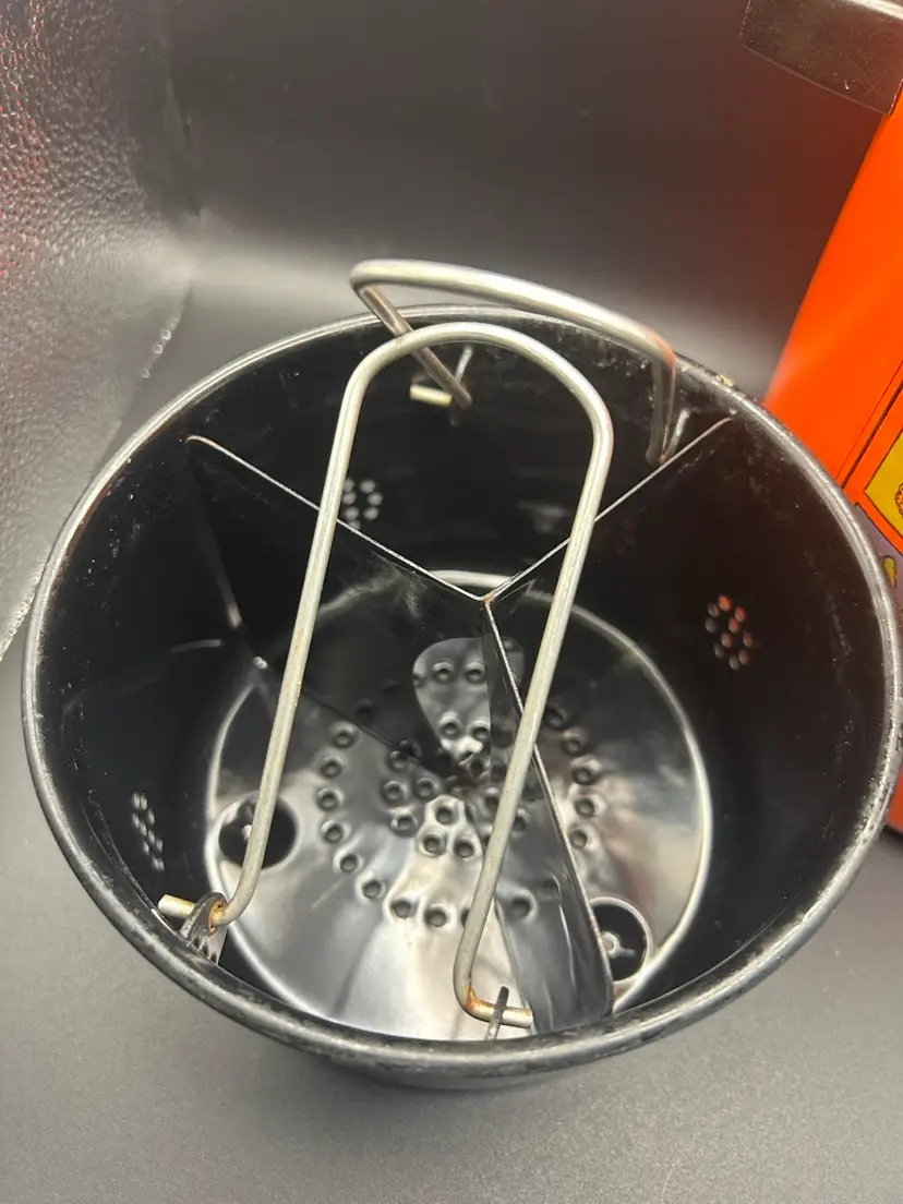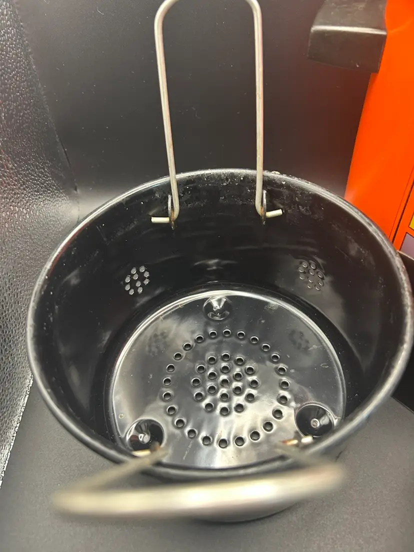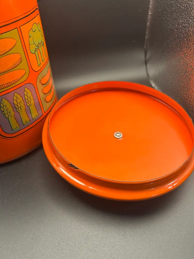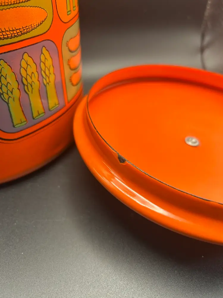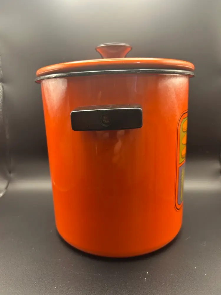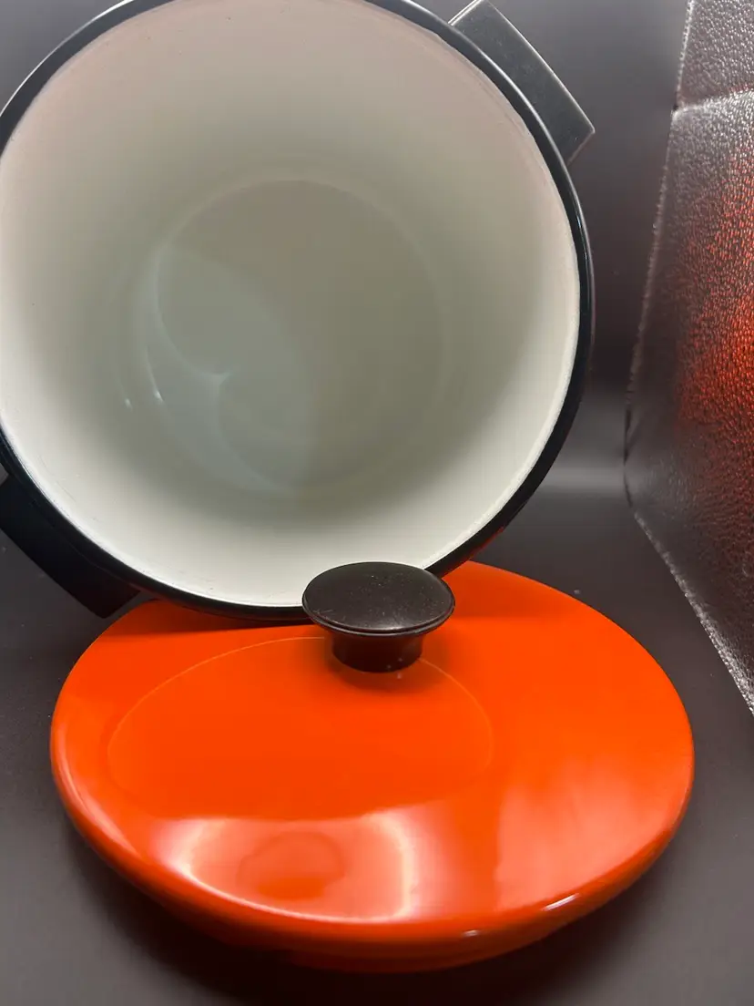 This multi-use enamel ware pot can be used for many things. It is in mint condition, a few chips on the lid but it does not effect the use of the pot. It is 4.5 quart pot with a removable steamer basket. The retro 70’s look would put a pop of color in the kitchen. It measures approximately 8” tall and 7” in diameter.