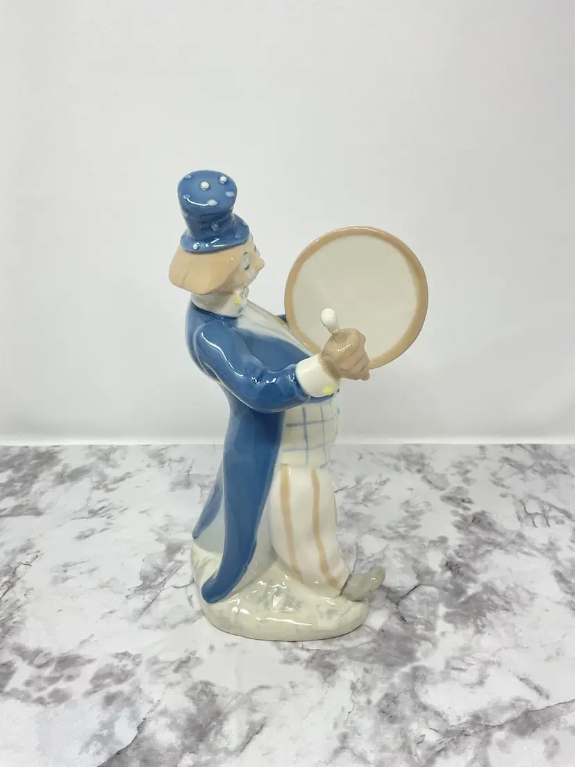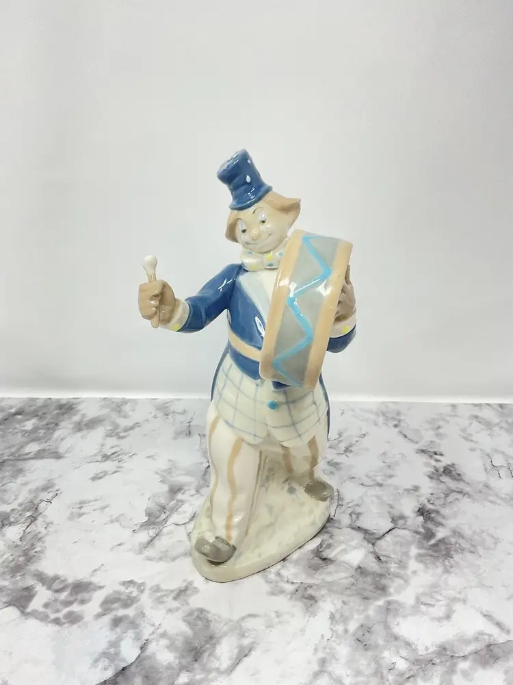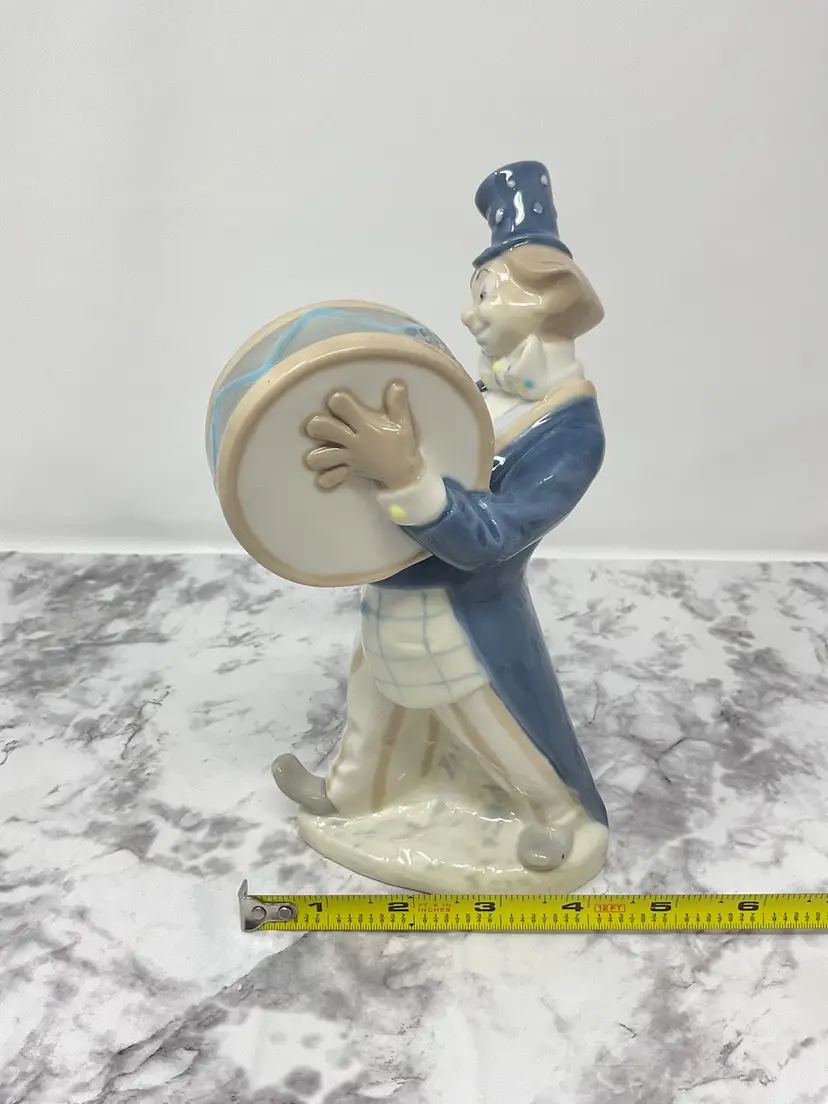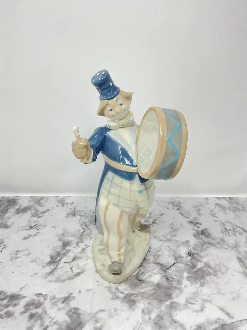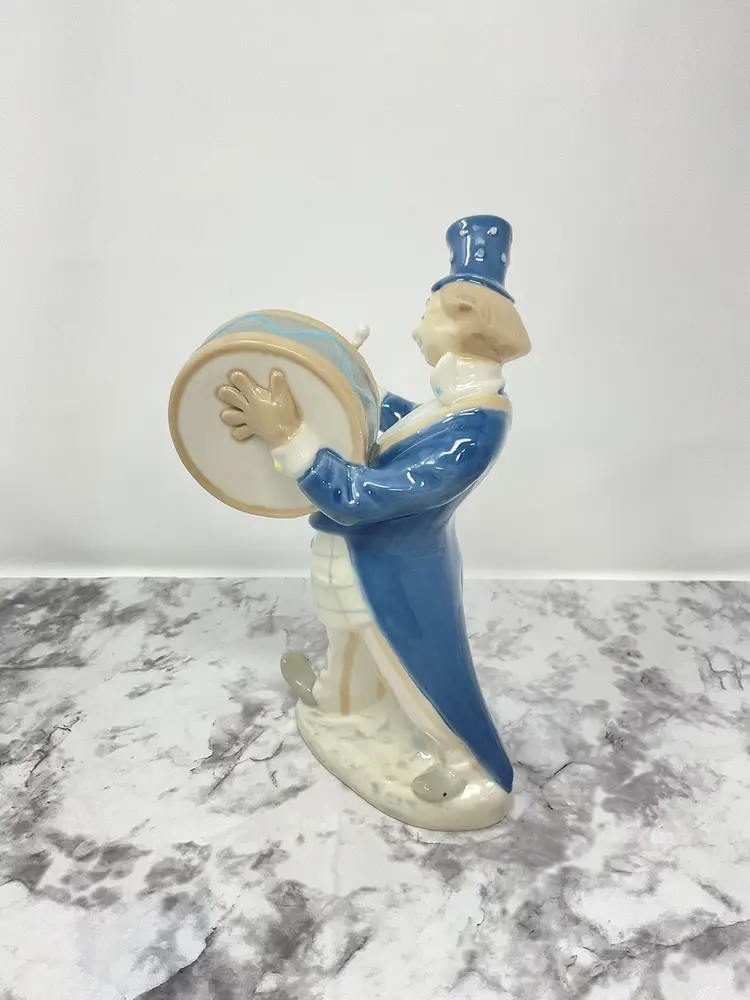 Rex Valencia Porcelain Clown in Blue Playing A Drum Figurine Handmade in Spain