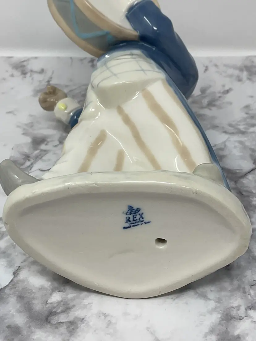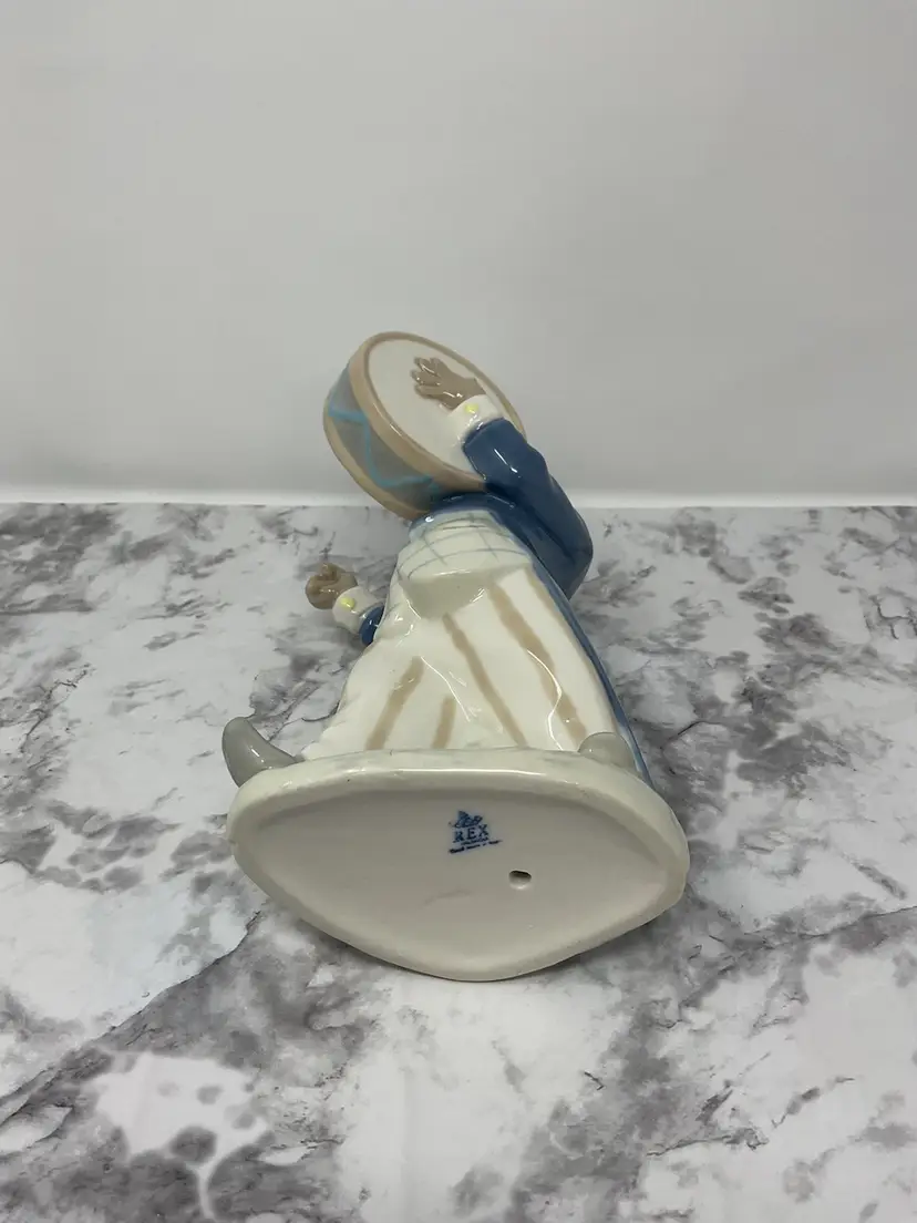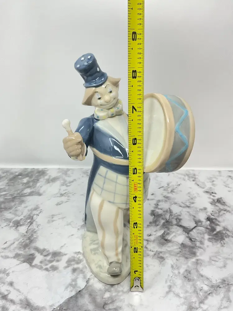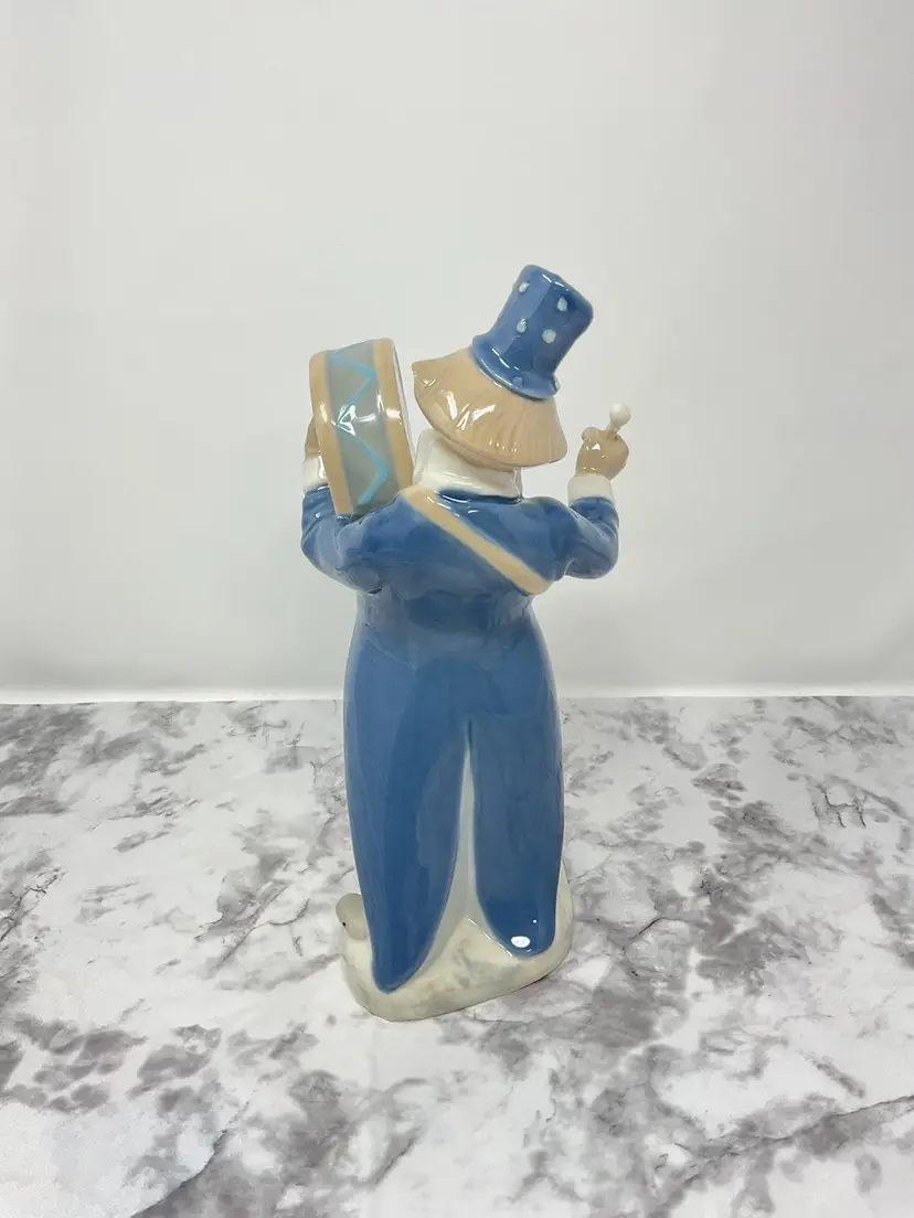 Rex Valencia Porcelain Clown in Blue Playing A Drum Figurine Handmade in Spain
