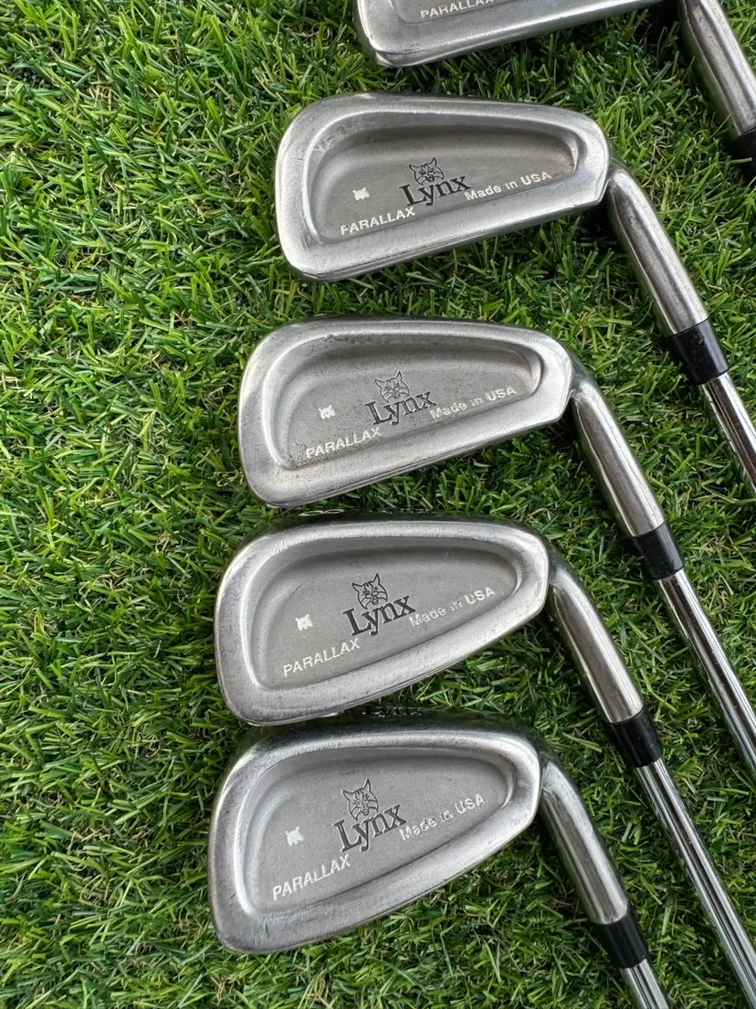 Early 90’s model right hand Lynx Parallax irons with Dynamic Gold X100U shafts, great shape!