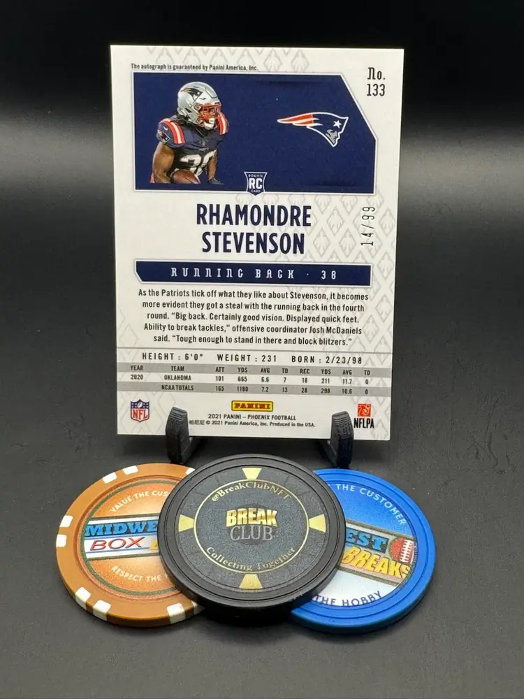 Rhamondre Stevenson Rc Auto 14/99 Silver Lazer Prizm Refractor 2021 Phoenix New England Patriots