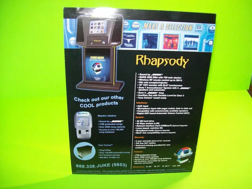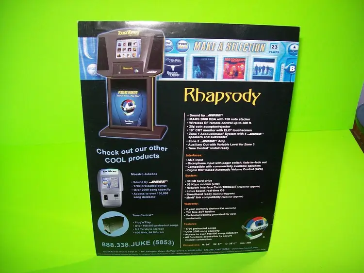 Modified Item: No Country/Region of Manufacture: United States Original/Reproduction: Original Year: 2003 Brand: TouchTunes Jukebox: Flyer