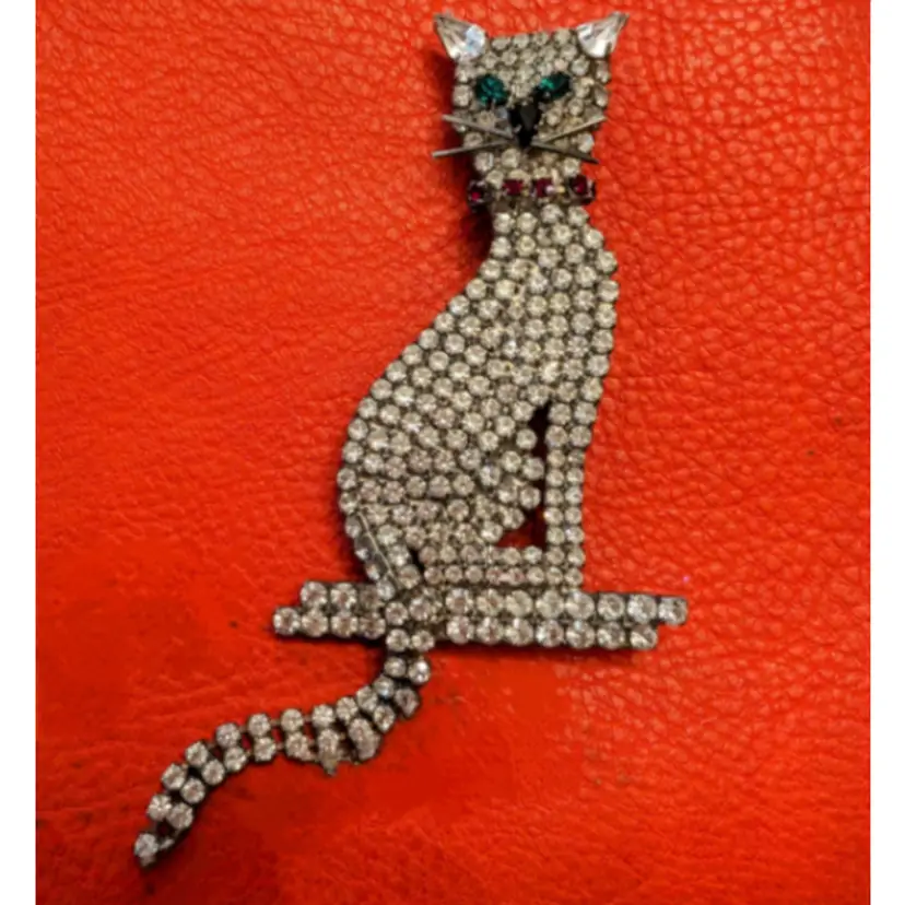 Vintage rhinestone custom designed cat pin. I hate to say vintage as this was custom designed for me but it was 1995, sooo past the 20 yr mark of vintage.