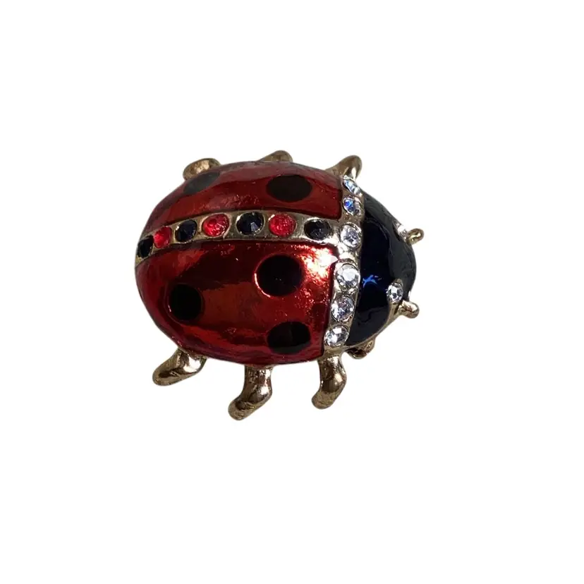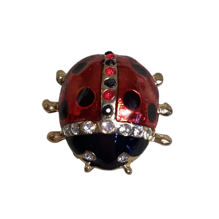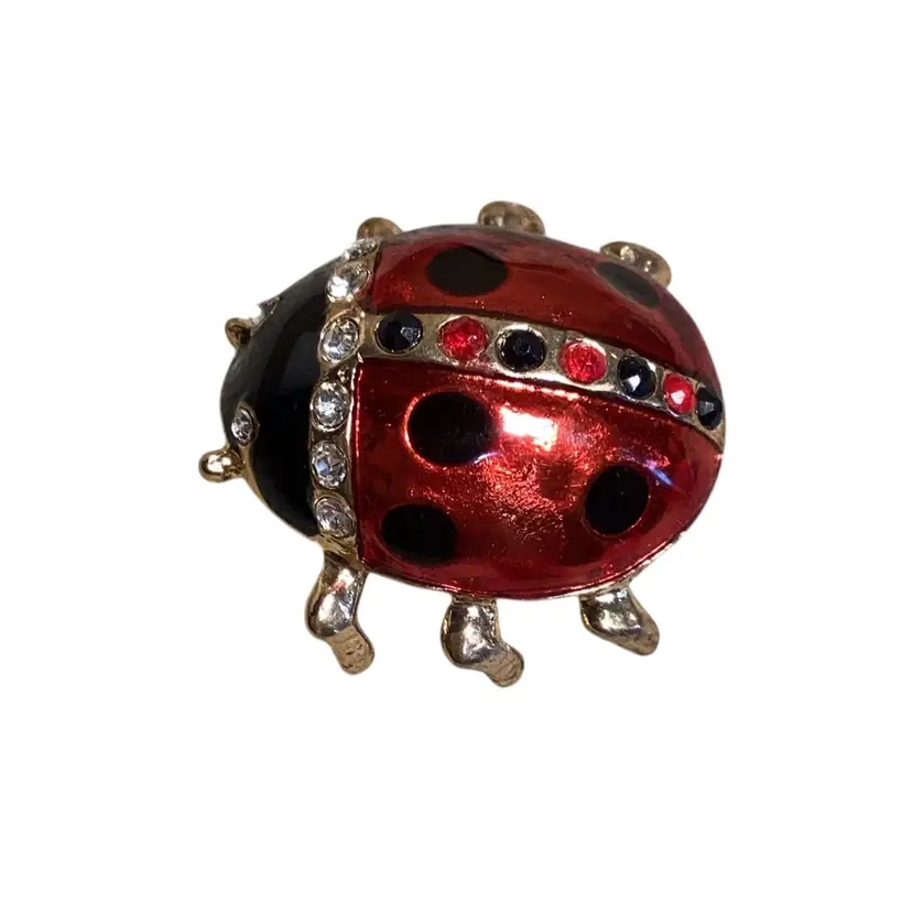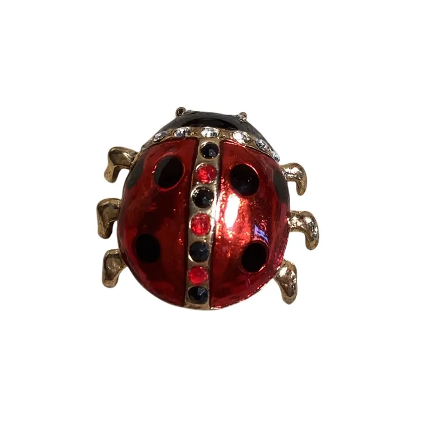 Rhinestone Lady Bug Brooch 1.25” X 1.5”