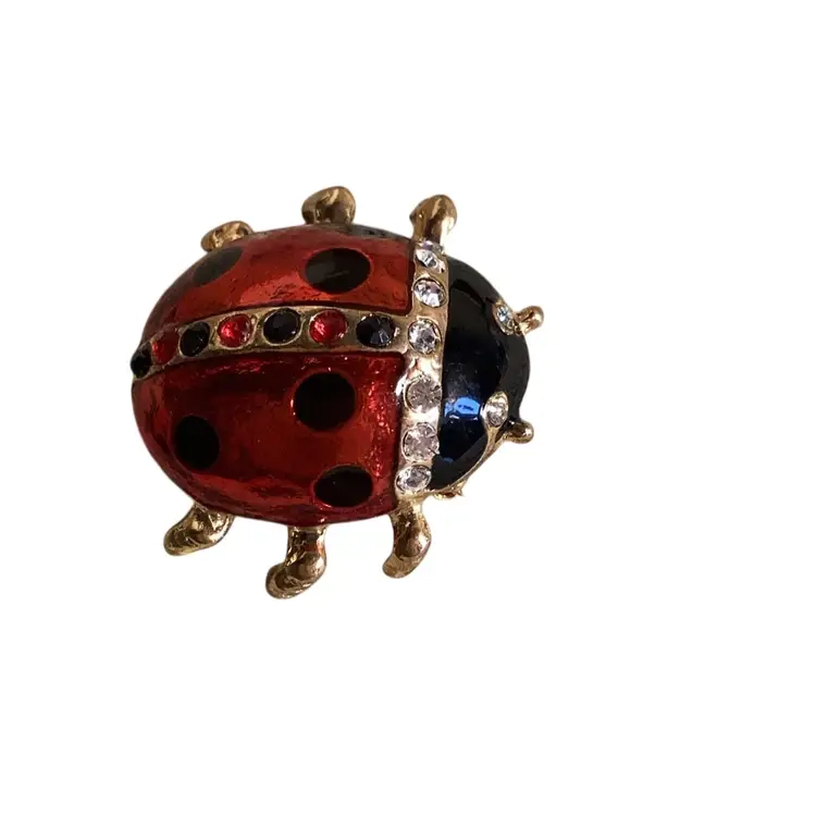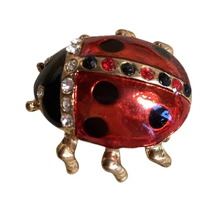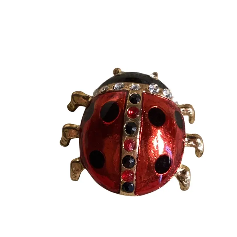 Rhinestone Lady Bug Brooch 1.25x 1.5”