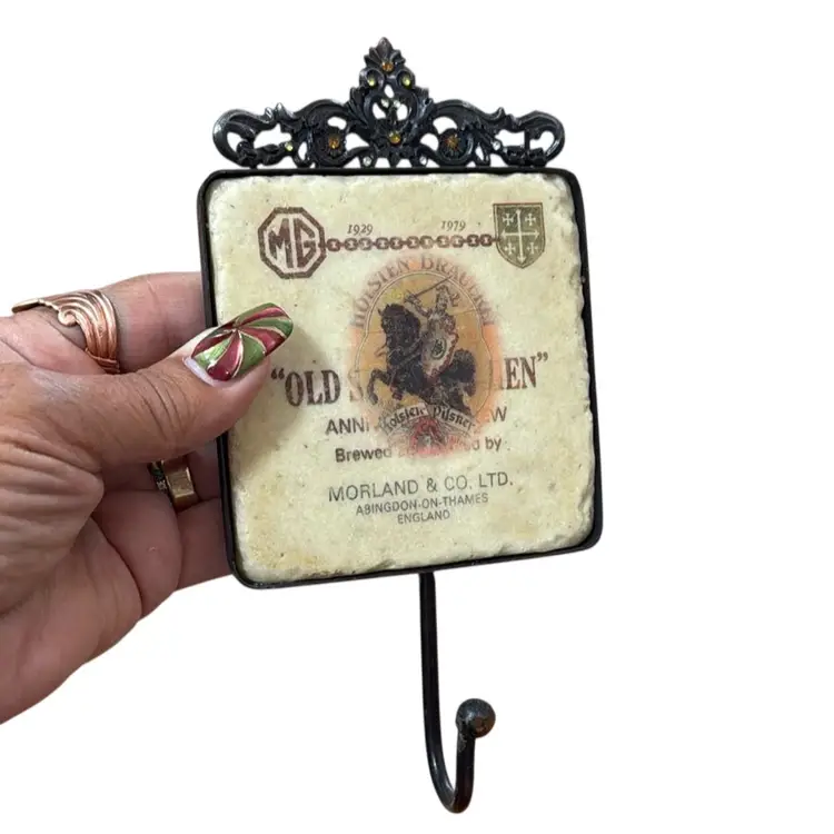 Rhinestone Old Tile Hook, Advertising Beer And Mg Car