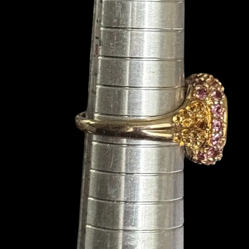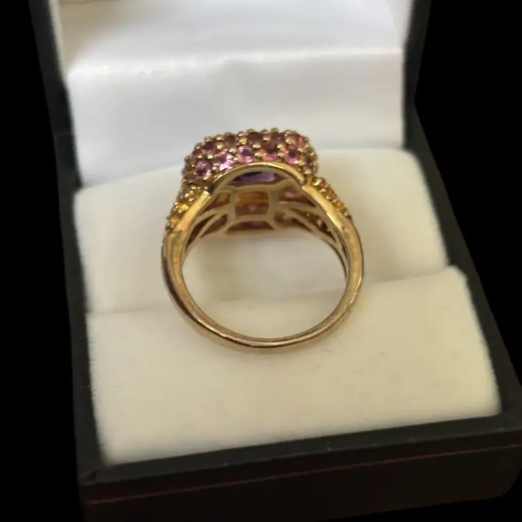 Gold over sterling silver multi coloured rhinestone ring. Size 7