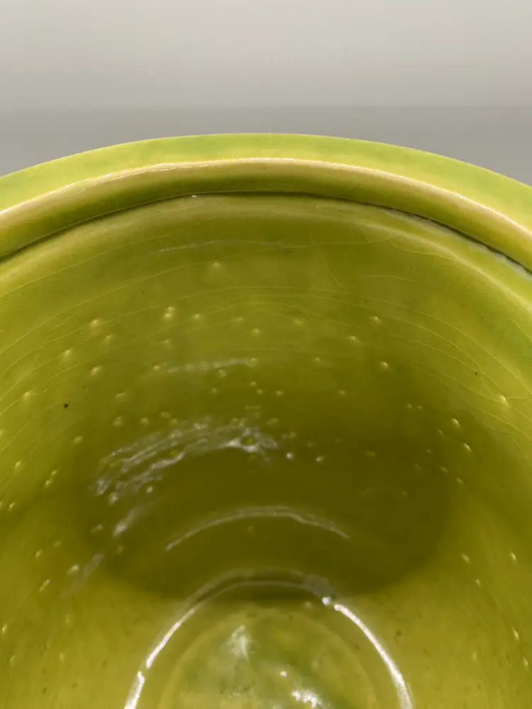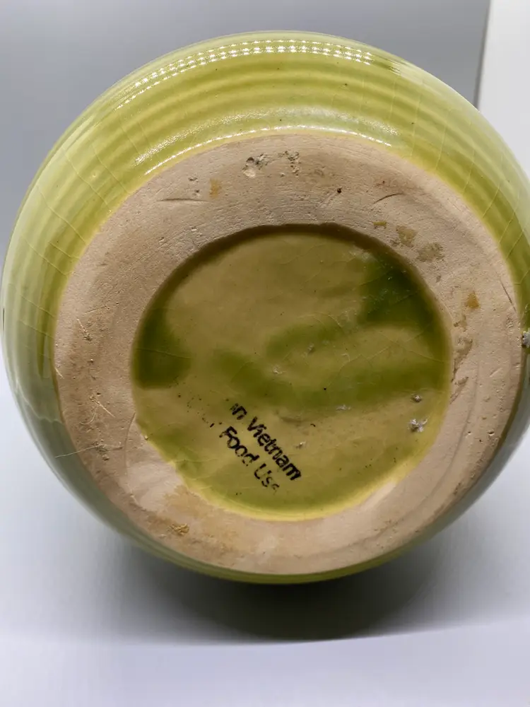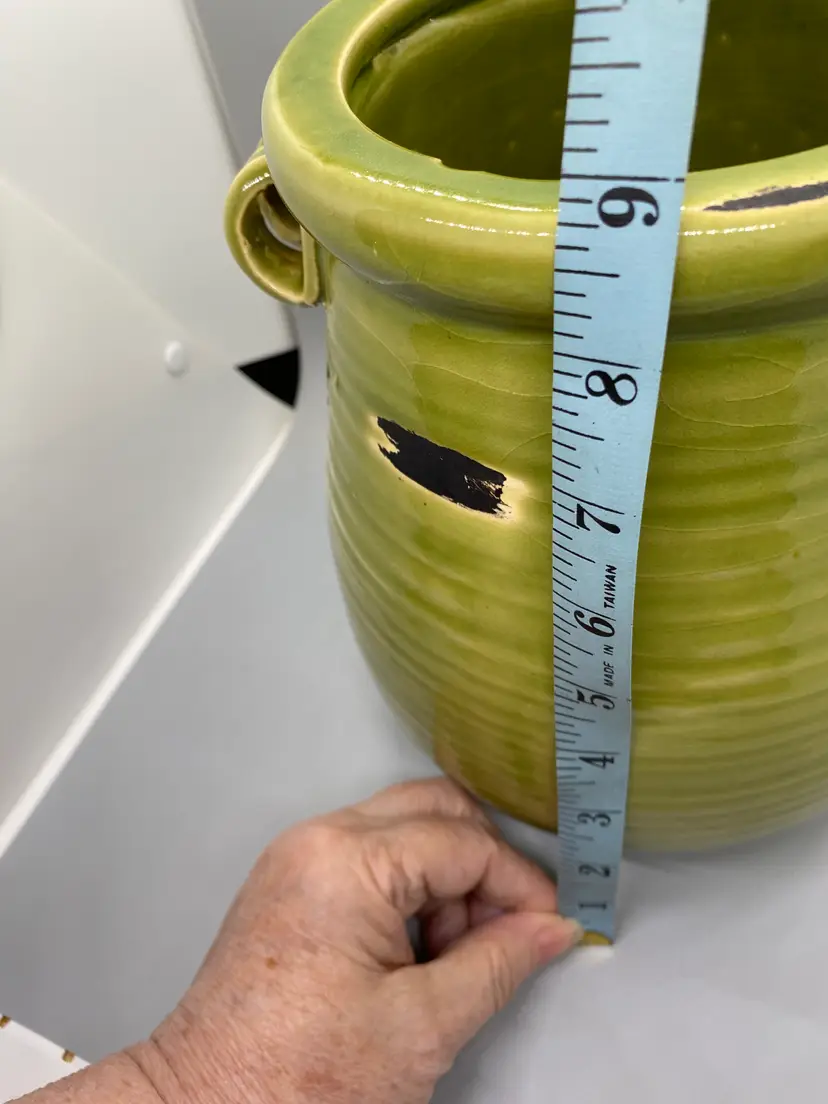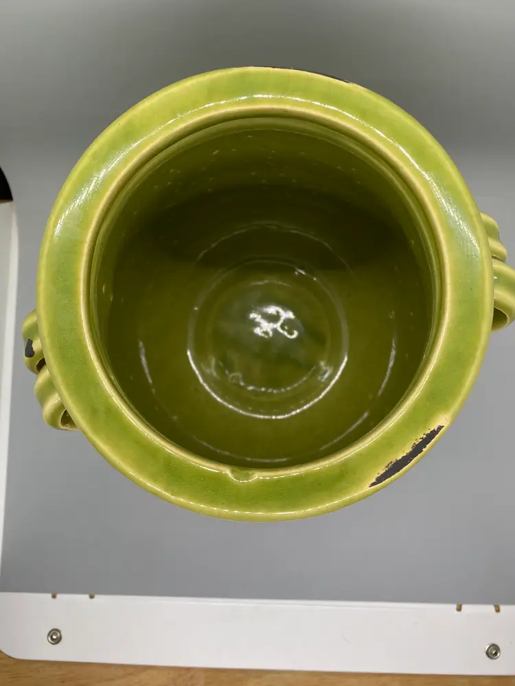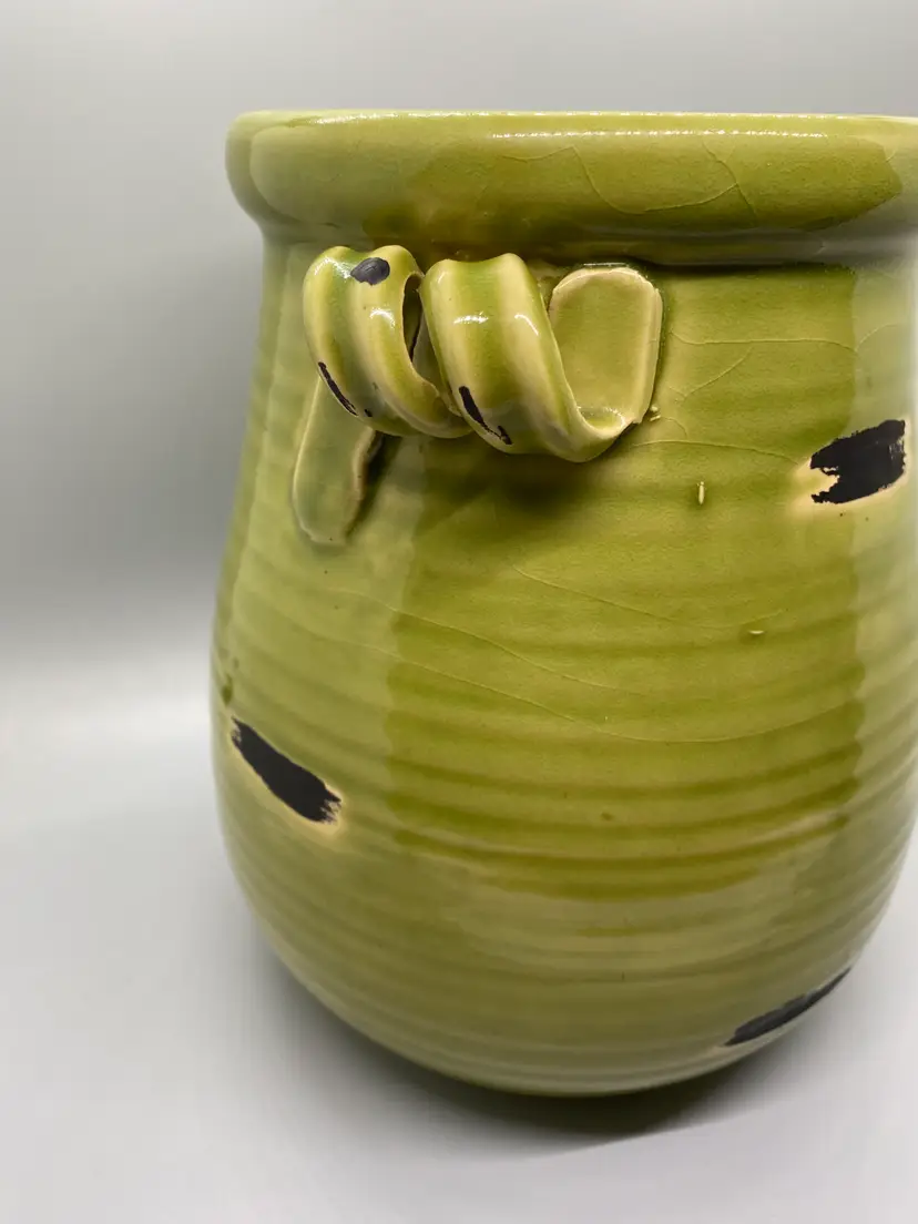 Large Art Pottery Vase applied Double handle cork screw style handles Green glaze Unbranded approx. 8.75" tall decorative use only