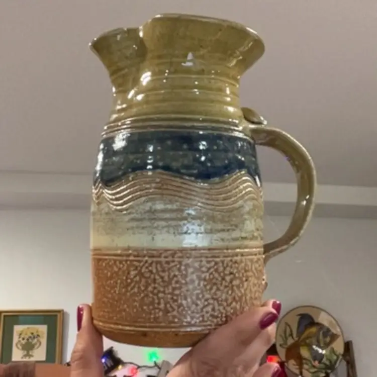 Richard Burkett Studio Art Pottery Etched Pitcher 6.5”