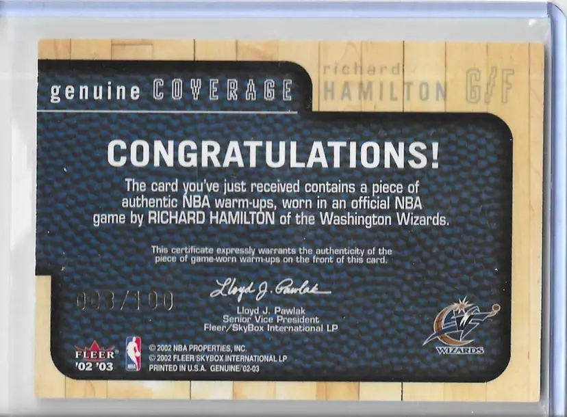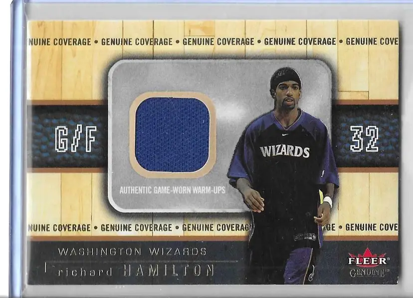 Check out this Richard Hamilton card featuring authentic game-worn warm-ups. A great addition for any Washington Wizards fan or card collector.