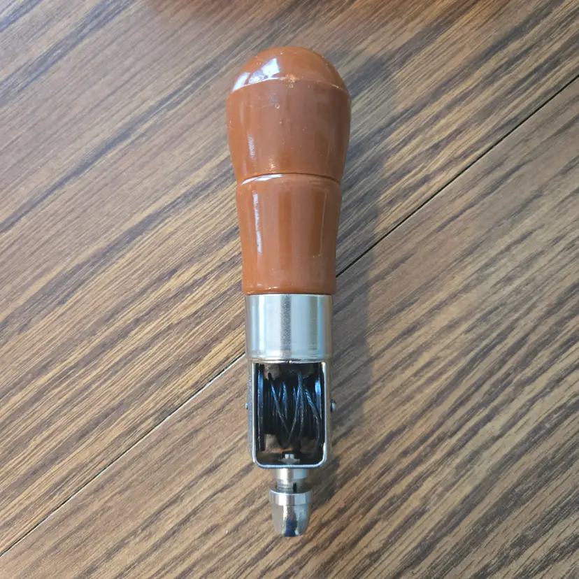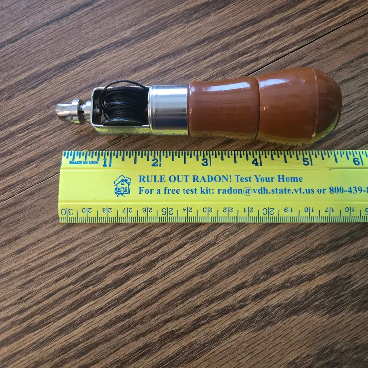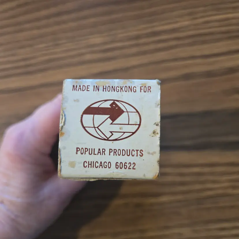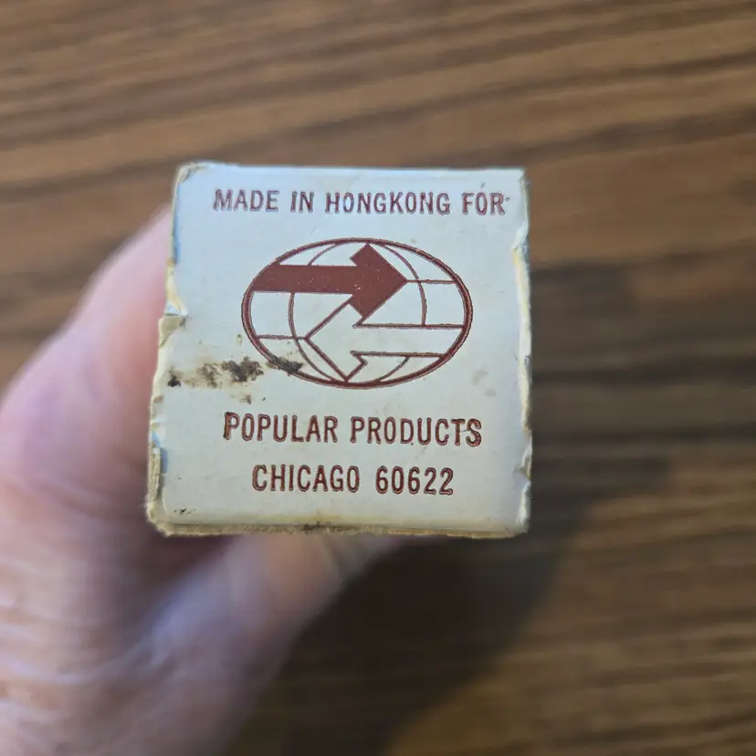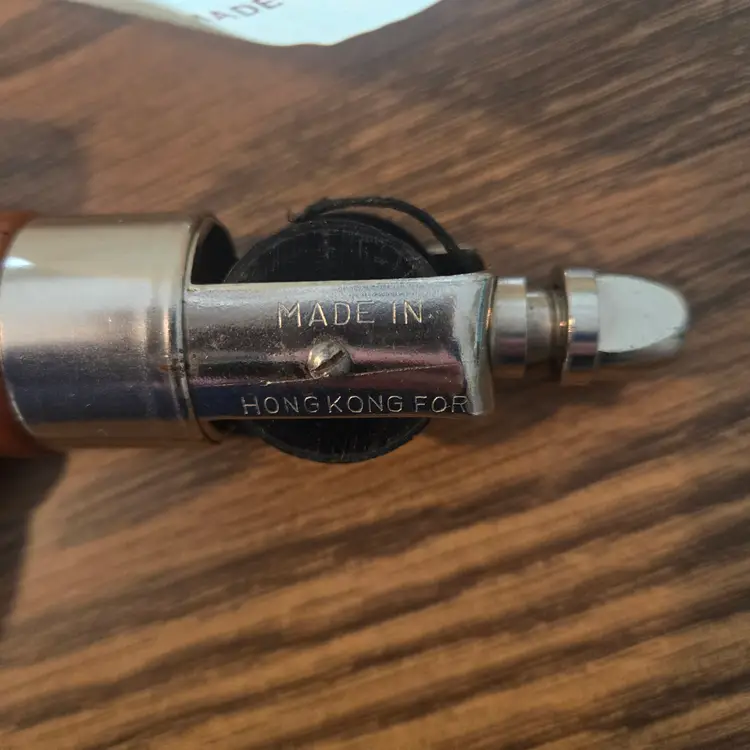 I found this stored among sewing things at my dad's house (pet and smoke free) after he passed. I believe it came from my great aunt's house. This sewing awl is used for leather and includes four pieces that fit inside the body of the awl. There are two needles, one curved. There is what appears to be a punch tool as well as a wrench/screwdriver tool. The instructions are included. When I found this, it had some black spots on the brown plastic (bakelite?) parts. It came off easily with just water and a cloth. I think it may have been from the black thread which may or may not be usable. Other parts appear like new, but I did not test the needles to make sure they are sharp enough to use on leather. The box has damage that appears to be ink or marker. See pictures!