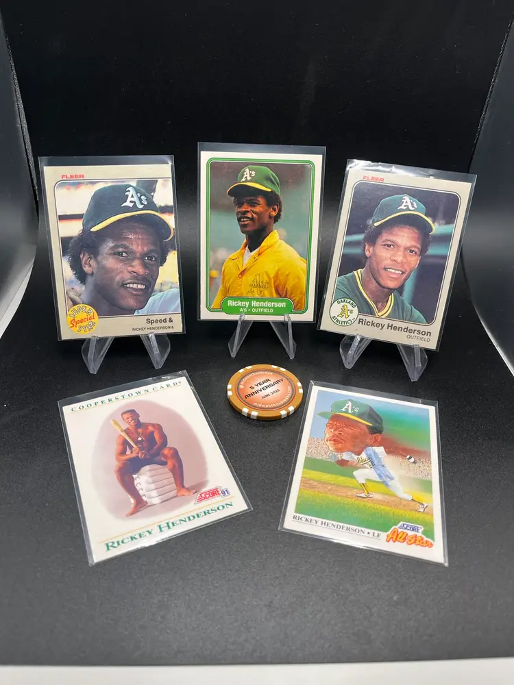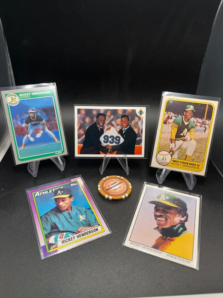 10-card lot of Rickey Henderson in Oakland Athletics uniform. Cards from 1982 on up.