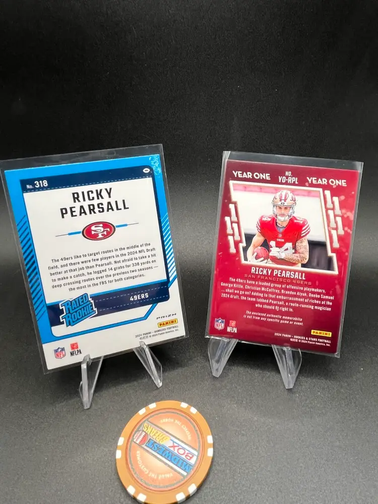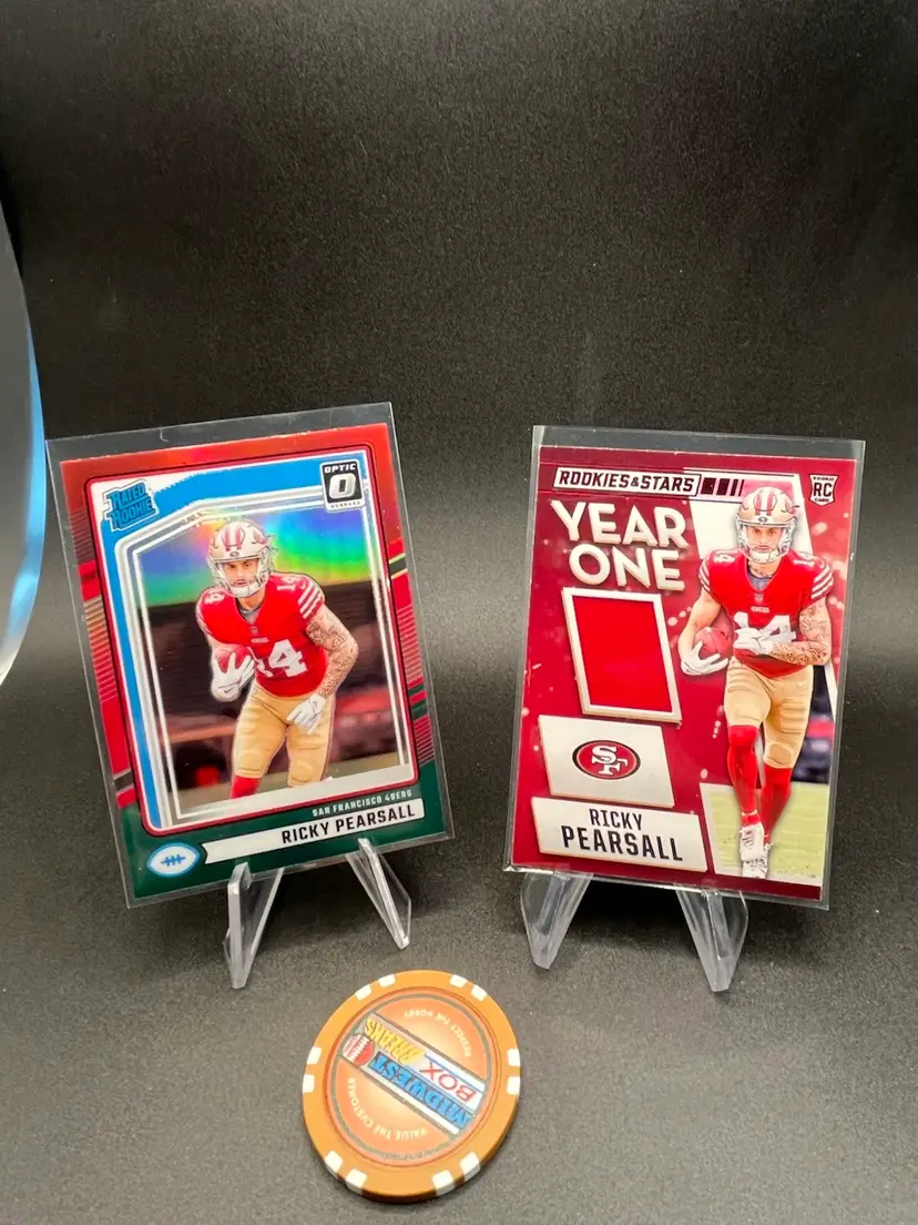 2024 RC Ricky Pearsall lot. Includes *Holiday optic preview from donruss *Year One patch from Rookies and Stars