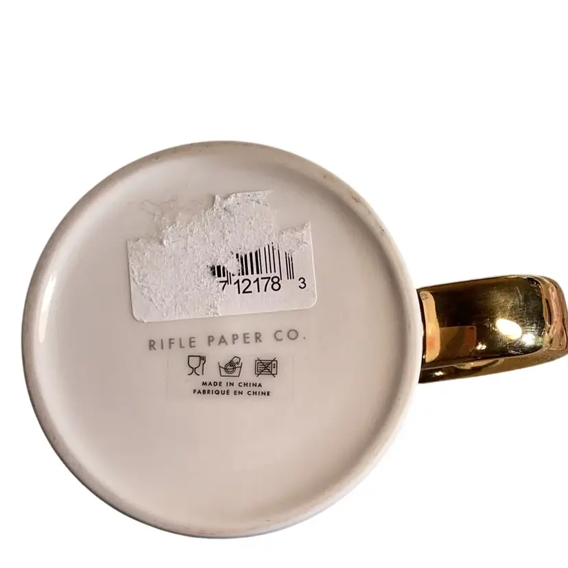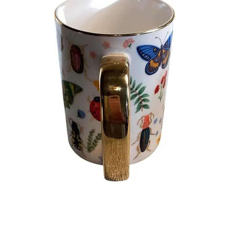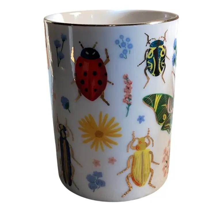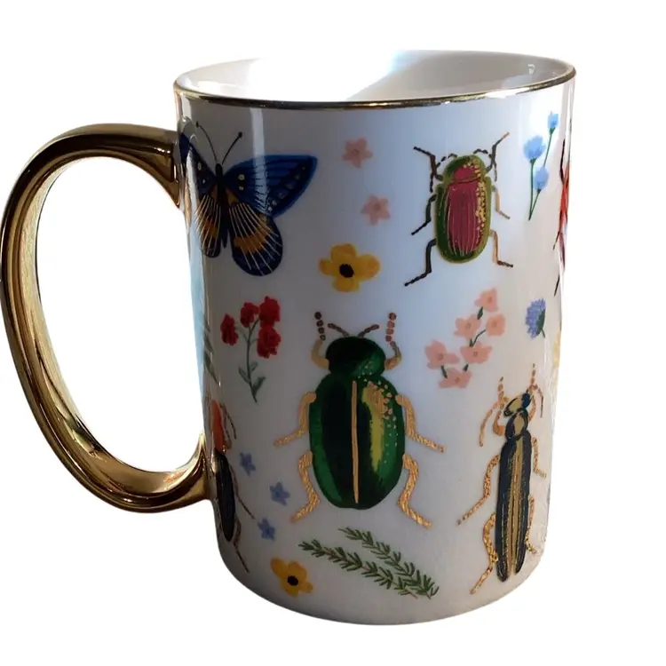 Rifle Paper Co Insect Mug With Florals And Gold Trim 4.5” T X5” W With Handle
