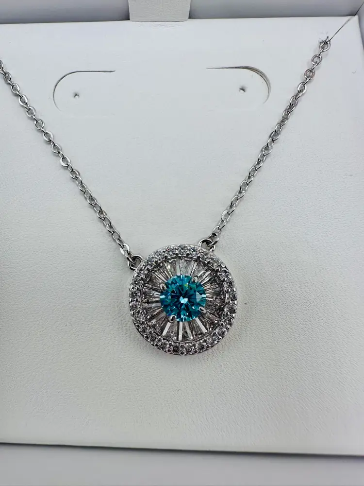 The Necklace Bomb Ring Bomb Party RBP 2624 is a stunning pendant necklace from Ring Bomb Party. The round pendant features a beautiful blue color, symbolizing love. Made of triple rhodium plated metal, with a lab created aquariums and topaz, this necklace has a length of 16 inches, making it the perfect accessory to add a touch of elegance to any outfit.