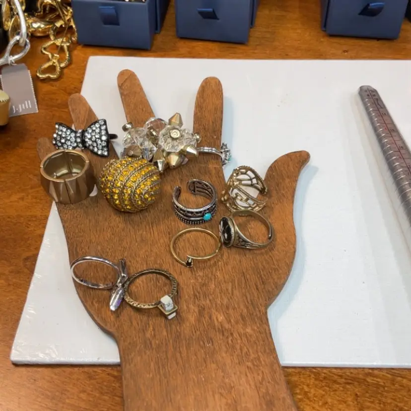 Welcome to our shop of mostly pre-owned and sometimes new jewelry treasures, trinket boxes, compacts - sometimes art and glass. Please follow us so you're in the know when we go live or add new items. Our curated beauties include a large selection of vintage pieces as well as many contemporary items. We also craft and design our own fun costume (and some fine) jewelry pieces, bookmarks, digital art and more in our small studio.