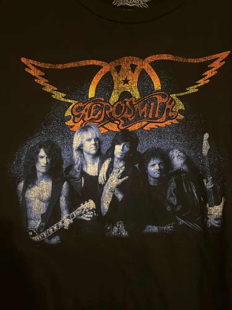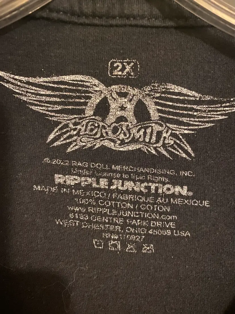 You are purchasing one Men's Size 2XL Black Aerosmith Short Sleeve T-Shirt by Ripple Junction from 2022. This T-Shirt is in good condition with no staining.