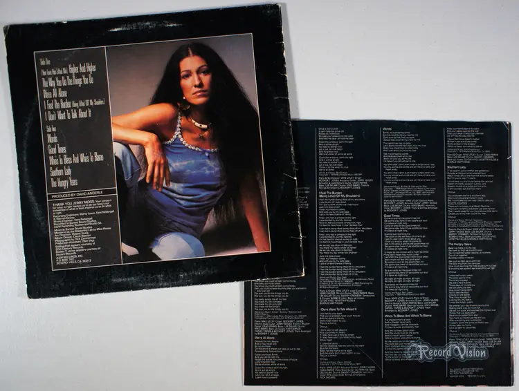 Vinyl plays with crackles and some clicks (play-graded). Cover has creases near edges and scuffing and surface impressions (front/back). Inner-sleeve is original (photos/lyrics/credits) seams partially split. Spine is readable with mild wear. Shelf-wear along top-edge, heavier across bottom edge and corners. Opening is crisp with signs of light use and a few divots. Information insert not included. (Not a cut-out.)