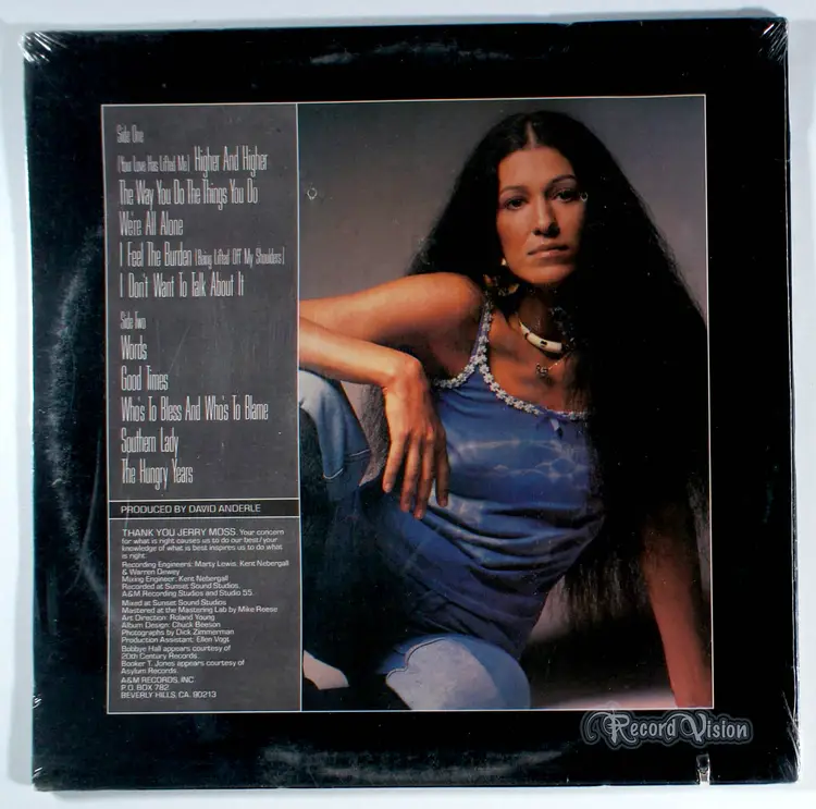 Anytime...Anywhere, by Rita Coolidge, is her most successful, reaching No. 6 on the Billboard 200 and having been certified platinum (over 1 million U.S. copies sold). The album spawned three Billboard top twenty hits; a cover of Boz Scaggs' We're All Alone (No. 7), a cover of The Temptations' The Way You Do The Things You Do (No. 20), and the album's biggest hit, (Your Love Has Lifted Me) Higher and Higher (No. 2), a remake of Jackie Wilson's (Your Love Keeps Lifting Me) Higher and Higher.