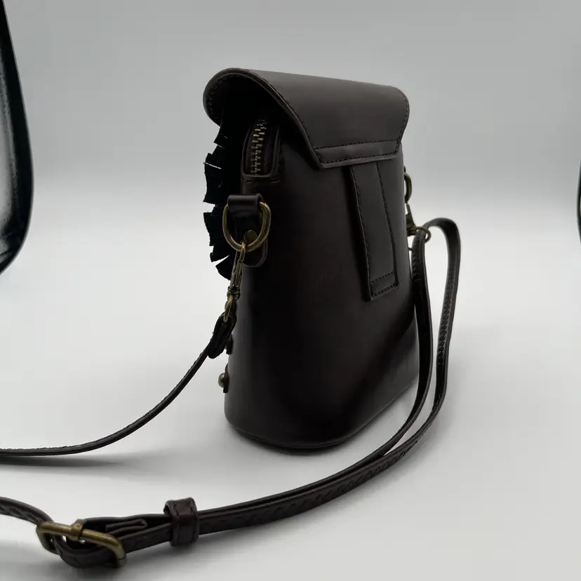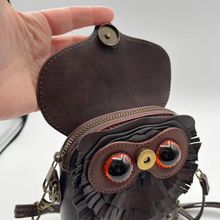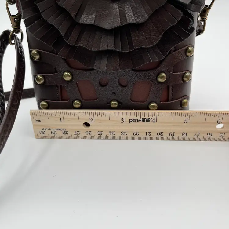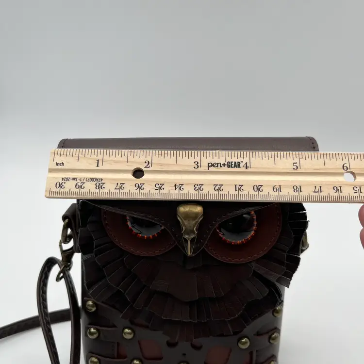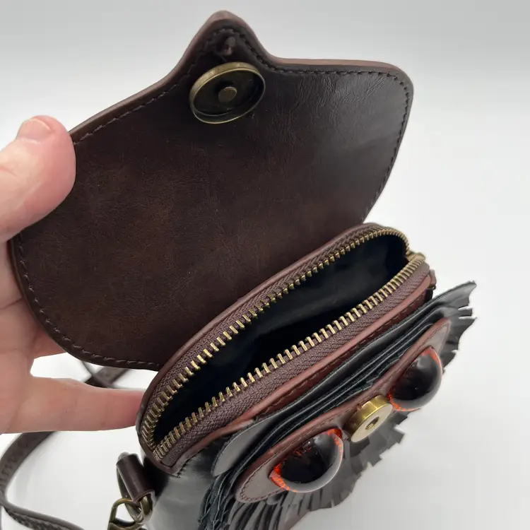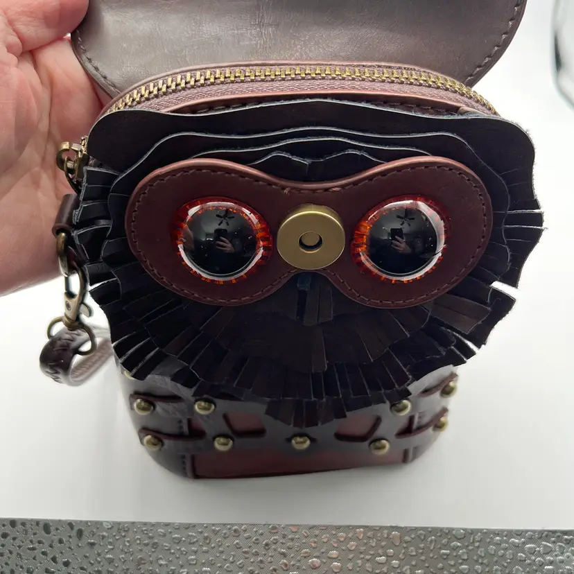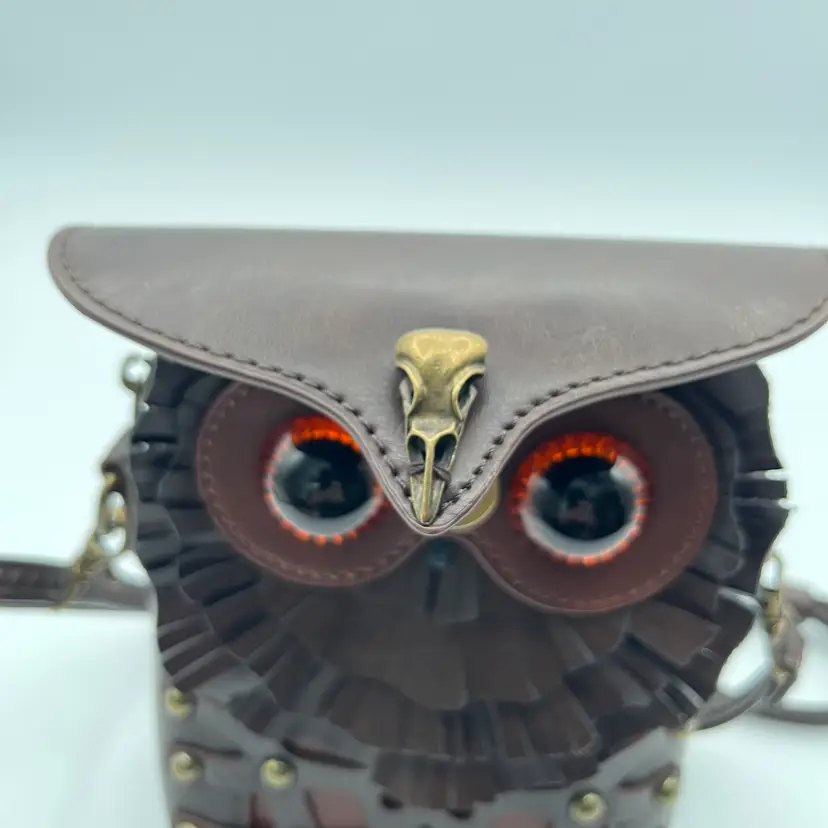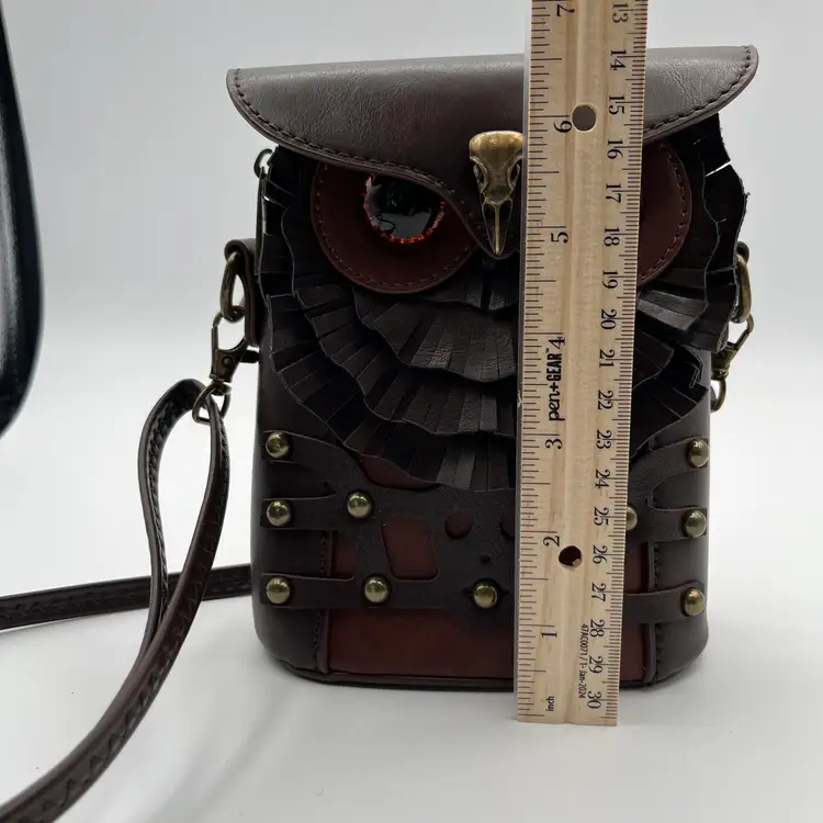 Pre-Owned Measuring 23cm x 16cm x 5cm Compact and durable PU leather Lined with soft polyester Secure zipper Adjustable crossbody strap Back strap for belt use The eyes have a couple of tiny scratches that I could not pick up with the camera. Made in UK by Ro Rox Alternative Clothing Store