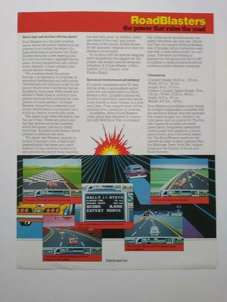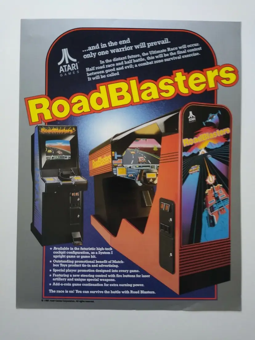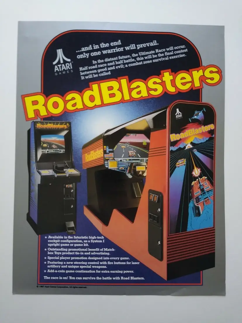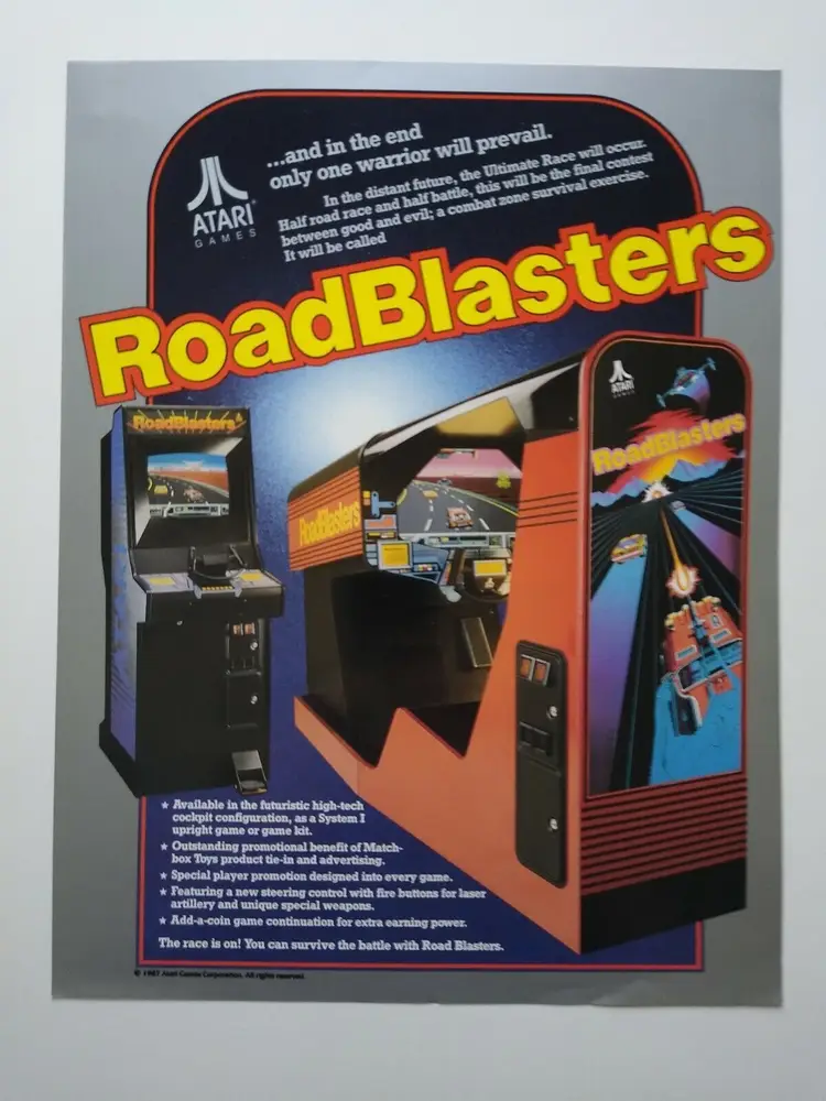 Arcade: Flyer Theme: Retro Gaming Modified Item: No Country/Region of Manufacture: United States Original/Reproduction: Original Year: 1987 Game Title: Roadblasters Brand: Atari