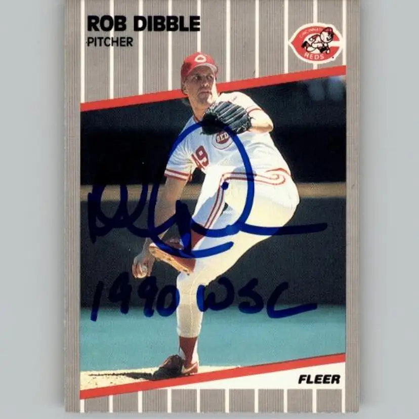 Authentic 1989 Fleer baseball card featuring Rob Dibble of the Cincinnati Reds, signed by Dibble with an inscription '1990 WSC'. A must-have for Reds fans and collectors of signed sports memorabilia. Every purchase supports Signatures For Soldiers and their mission to assist homeless and disabled veterans.