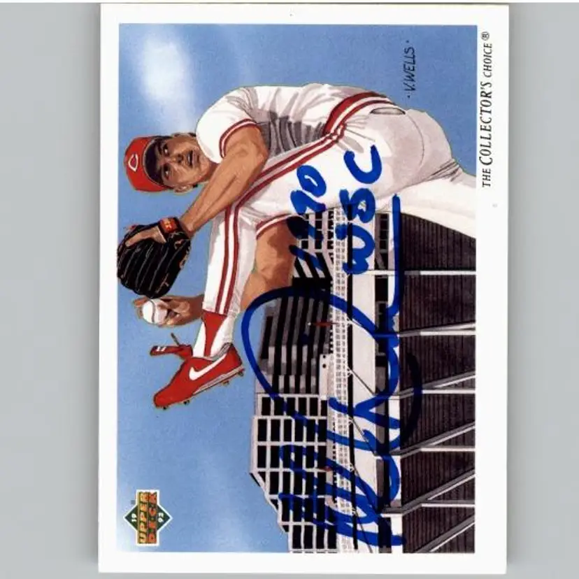 Authentic 1992 Upper Deck baseball card featuring Rob Dibble of the Cincinnati Reds, adorned with his signature in blue ink. A prized collectible for Reds fans and autograph card enthusiasts. Your purchase supports Signatures For Soldiers in helping homeless and disabled veterans.
