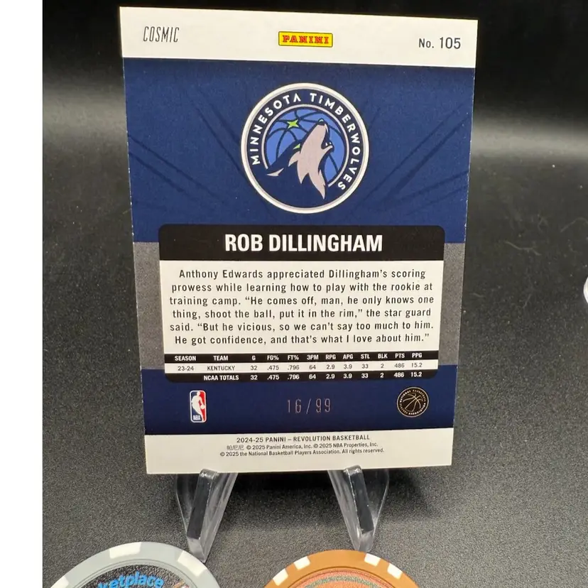 24-25 prizm rob Dillingham cosmic #16/99 of the Minnesota Timberwolves.