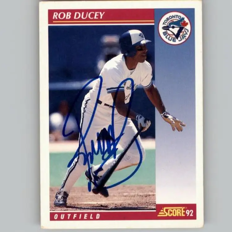 Authentic 1992 Score baseball card featuring Rob Ducey of the Toronto Blue Jays, signed boldly in blue Sharpie. A great addition for Blue Jays fans and autograph collectors. Your purchase supports Signatures For Soldiers in helping homeless and disabled veterans.