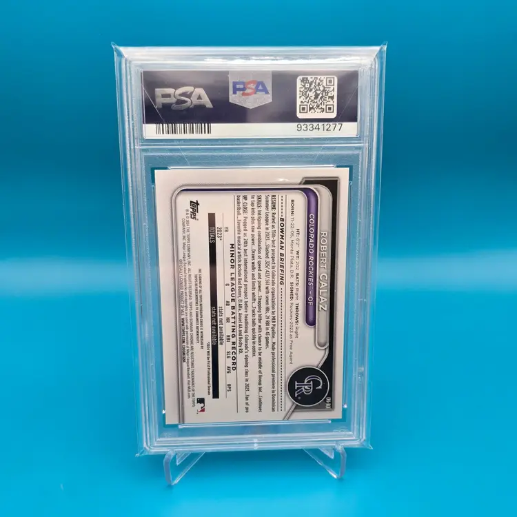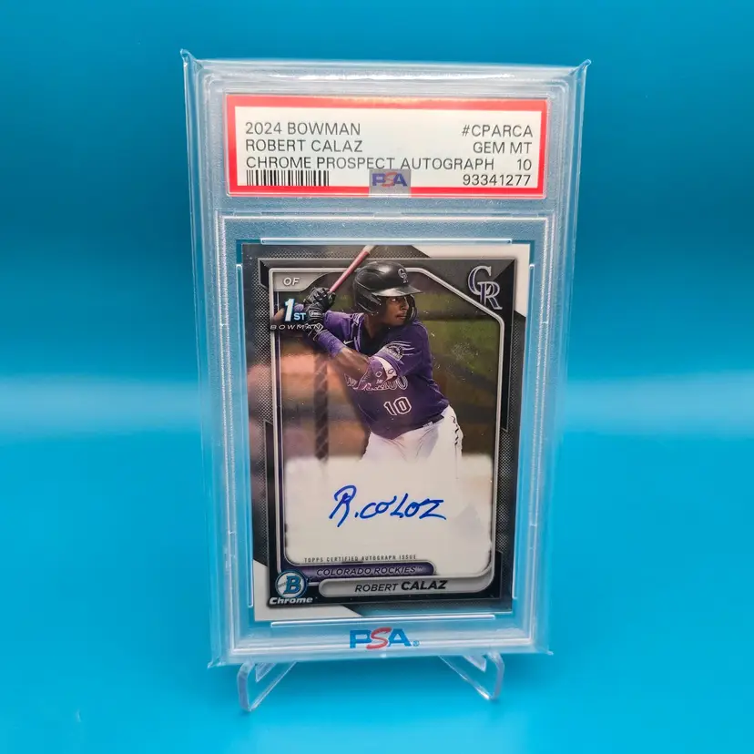 Colorado Rockies prospect Robert Calaz 1st Bowman auto PSA 10. Certified GM MT condition. Shipped BMWT.