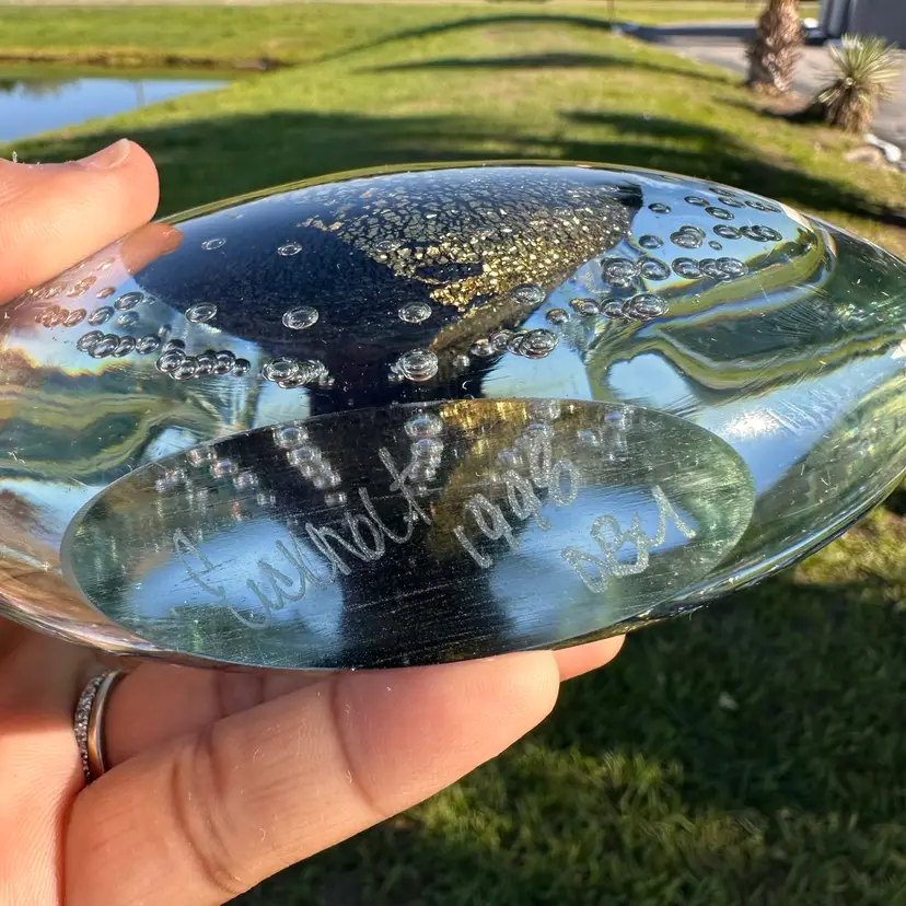 Approx 6.5” tall, can sit either upright or on the side. No chips or cracks, light surface wear