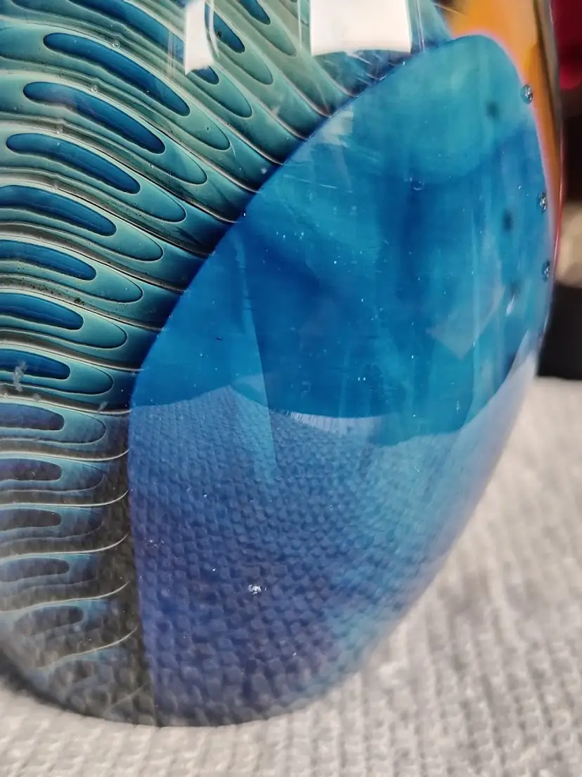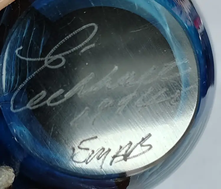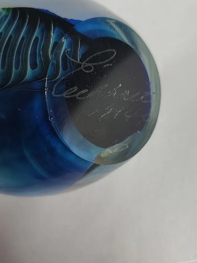 VERY RARE!! 4.7” tall. 1994. Some tiny flea bites on one side, mainly towards bottom and unseen when turned, Does not distract from this stunner!! (see last 2 pics)